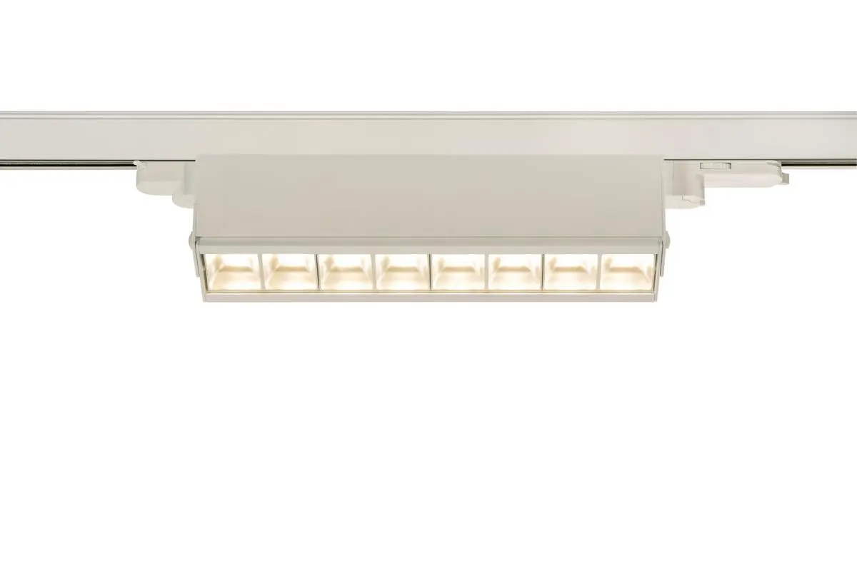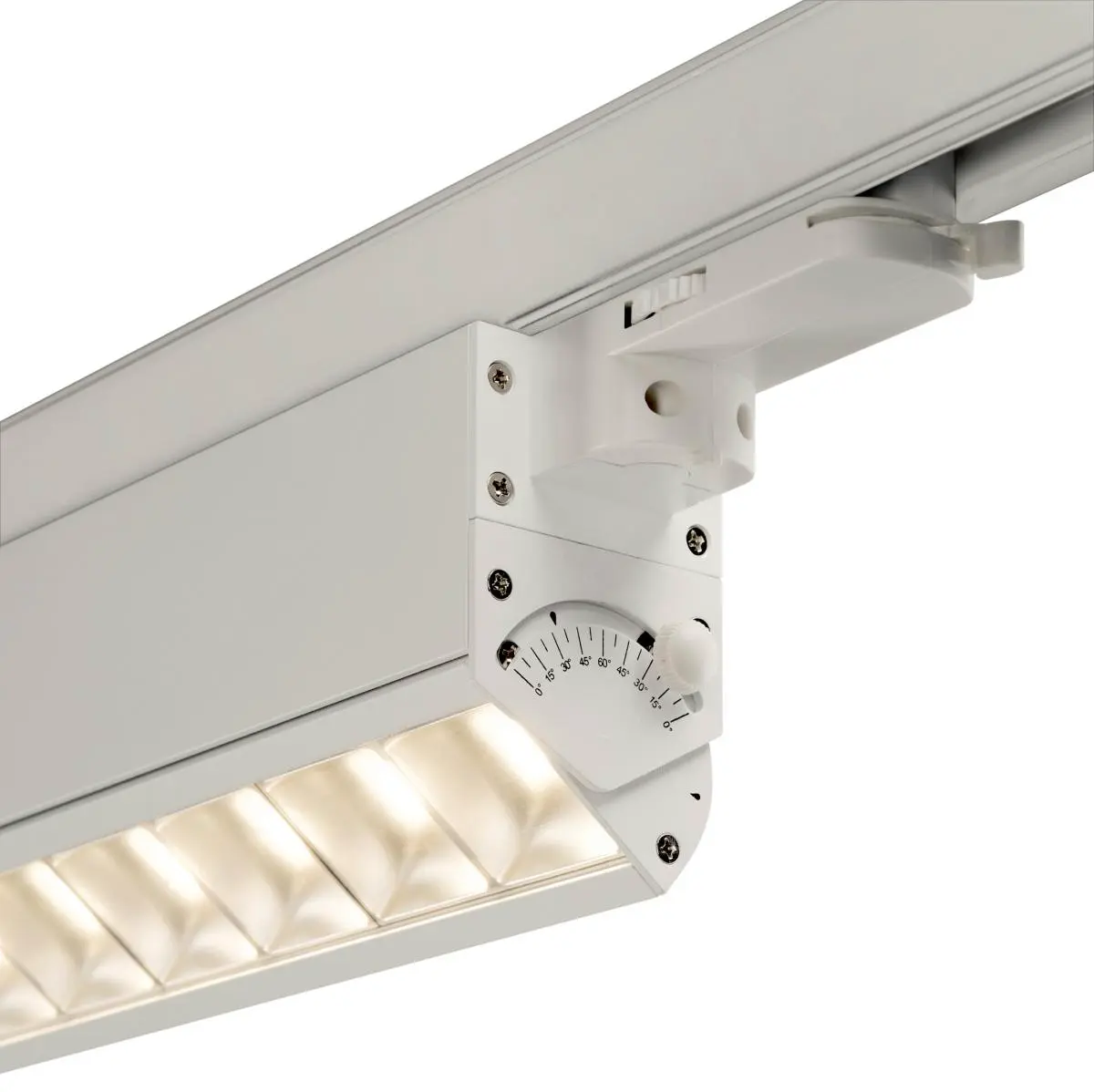 SLV Sight Move 3-Phasen LED-Leuchte 1004691 setzt mit ihrem Raster und rückversetzter Lichtquelle moderne Statements und schafft eine blendreduzierte Grundbeleuchtung und Beleuchtung weitere Wandflächen. Für eine kreative Ausrichtung ist sie auf beide Seiten um 60° schwenkbar und lässt sich via DALI individuell ansteuern und dimmen. Die SLV Sight Move 3-Phasen LED-Leuchte leistet 26 Watt, bei einem Lichtstrom von 2700 Lumen und einer warmweißen Farbtemperatur in 3000 Kelvin. Ihre Qualität ist mit 30.000 Stunden hoch, die der Hersteller mit 5 Jahren Garantie absichert. Unsere SLV Sight Move 3-Phasen LED-Leuchte trägt ein weißes Gehäuse aus hochwertigem Aluminium und misst eine Länge von 45cm, eine Breite mit 5.6cm sowie eine Höhe in 10.5cm.