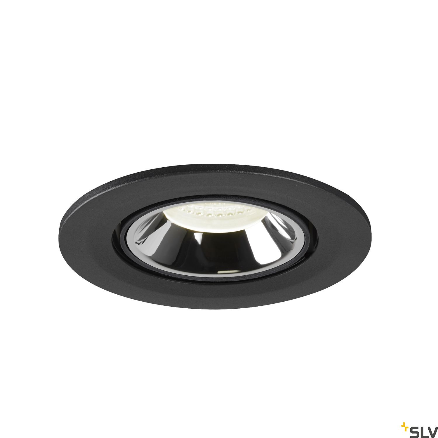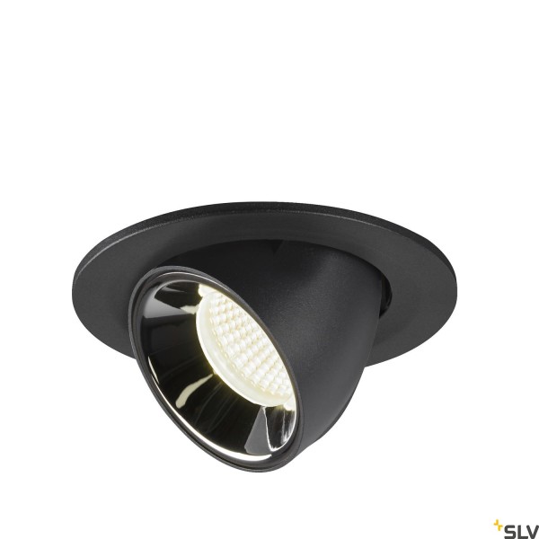 Die SLV LED Deckeneinbauleuchte Numinos Gimble S 1005908 ist um 60 Grad schwenkbar und um 355 Grad drehbar, trägt ein Leuchtengehäuse aus hochwertigem Aluminium in der Farbe schwarz mit chrom farbigem Reflektor und besitzt wegen der verwendeten Lichttechnik eine hohe Qualität, worauf der Hersteller 5 Jahre Garantie gewährt. Die Lebensdauer ist mit 50.000 Stunden langlebig und die Farbwiedergabe mit einem CRI 90 natürlich, brillant. Ihre Leistung ist 8.6 Watt, mit einer neutralweißen Farbtemperatur in 4000 Kelvin, einem Lichtstrom von 750 Lumen und einem Abstrahlwinkel in 40 Grad. Zum Betrieb an 230 Volt Netzspannung benötigt der Einbaustrahler einen LED Treiber, der als externes Zubehör in dimmbar Dali, dimmbar Phase und nicht dimmbar mit angeboten wird, zudem stehen Einbaurahmen für zu große Lochausschnitte und Diffusoren für diverse Lichtaustritte zur Verfügung. Der Einbau ist für Decken vorgesehen, hierfür trägt er einen Einbaudurchmesser von 9cm und eine Einbautiefe von 7cm, der Blendendurchmesser hingegen misst 10cm und die dazugehörige Höhe ist 7cm.