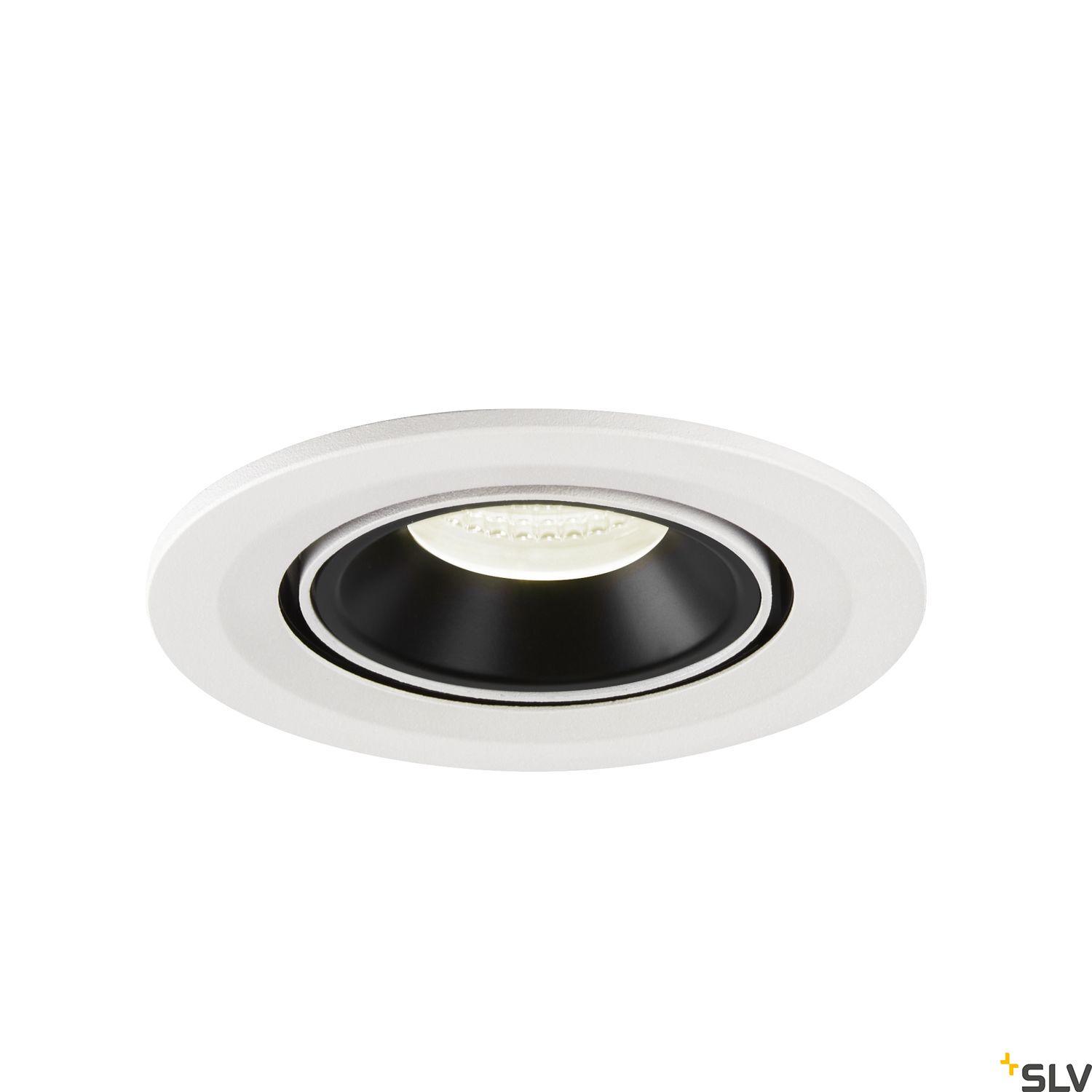 Die SLV LED Deckeneinbauleuchte Numinos Gimble S 1005918 hat eine Leistung von 8.6 Watt, bei einem Lichtstrom von 730 Lumen, eine neutralweiße Farbtemperatur in 4000 Kelvin und einen Abstrahlwinkel von 55 Grad. Die um 60 Grad schwenkbare und um 355 Grad drehbare SLV Leuchte hat ein hochwertiges Aluminium Lampengehäuse, in der Farbvariante weiß, mit schwarzfarbigem Reflektor und besitzt wegen der verwendeten Materialien und Lichttechnik, eine hohe Qualität, worauf der Hersteller 5 Jahre Garantie gewährt. Die Lebensdauer ist mit 50.000 Stunden langlebig und die Farbwiedergabe mit einem CRI 90 natürlich, brillant. Als Zubehör werden Einbaurahmen für zu große Lochausschnitte und Diffusoren für verschiedene Lichtaustritte angeboten, des Weiteren LED Treiber zum Anschluss und Betrieb an 230 Volt Netzspannung in dimmbar Dali, dimmbar Phase und nicht dimmbar. Der Einbaustrahler hat einen Lochkreis von 9cm und eine Einbautiefe von 7cm, der Blendendurchmesser beträgt 10cm und die Höhe ist 7cm und lässt sich in Decken einbauen.
