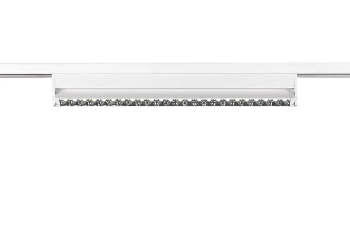 SLV In-Line 46 48V LED-Leuchte 1006650 überzeugt mit ihrem schicken Darklight-Reflektor und sorgt mit UGR16 für eine blendfreie Ausleuchtung großer Flächen. Sie ist für eine individuelle Ausrichtung um 180° schwenkbar und lässt sich DALI dimmen und ansteuern. Die SLV In-Line 46 48V LED-Leuchte leistet 14 Watt, bei einem Lichtstrom von 1250 Lumen und einer neutralweißen Farbtemperatur in 4000 Kelvin und gibt Farben mit einem einem CRI 90 natürlich und brillant wieder. Ihre Qualität ist mit 40.000 Stunden hoch, die der Hersteller mit 5 Jahren Garantie absichert. Unsere SLV In-Line 46 48V LED-Leuchte trägt ein weißes Gehäuse aus hochwertigem Aluminium und misst eine Länge von 45.5cm, eine Breite mit 2.2cm sowie eine Höhe in 5.7cm.