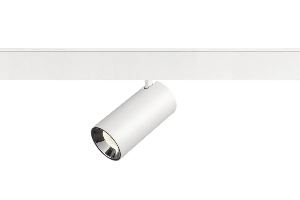 SLV Numinos S 48V LED-Strahler 1006752 kommt mit einem zylindrischen Design zum Einsatz, wobei das sauber verarbeitete weiße Gehäuse innenseitig mit einem chromfarbenen Reflektor abschließt und in gelungenen Projekten trendige Statements setzt. Er lässt sich DALI dimmen und verfügt mit CRI 90 über eine natürlich brillante Farbwiedergabe und lässt sich für eine zielführende Ausleuchtung um 350° drehen und um 90° schwenken. Der SLV Numinos S 48V LED-Strahler leistet effiziente 16 Watt, bei einem Lichtstrom von 1350 Lumen, mit einer neutralweißen Farbtemperatur in 4000 Kelvin und einem Abstrahlwinkel in 20°. Seine Qualität ist mit 50.000 Lebensstunden in L80B50 hoch, die der Hersteller zusätzlich mit 5 Jahren Garantie absichert. Unser SLV Numinos S 48V LED-Strahler besitzt ein Lampengehäuse aus hochwertigem Aluminium und misst einen Durchmesser von 6cm, eine Länge mit 12.5cm sowie eine Höhe in 9cm. Für einen individuellen Lichtaustritt stehen ihm als Zubehör verschiedene Diffusoren zur Auswahl.