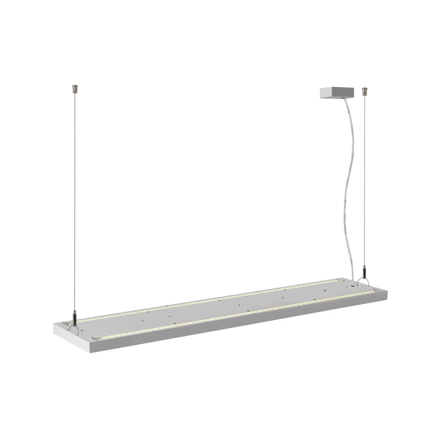 SLV Worklight Pro 120 LED-Hängeleuchte 1007470 trägt ein graues Aluminiumgehäuse mit 120cm Länge und lässt sich in der Pendellänge mit 250cm individuell einstellen. Sie erreicht L80B10 mit 50.000 Lebensstunden und effizienten 122 Lumen pro Watt, worauf der Hersteller 5 Jahre Garantie gewährt. Die SLV Worklight Pro 120 LED-Hängeleuchte hat die Funktion direkt/indirekt und leuchtet 3300 Lumen nach oben und 2800 Lumen nach unten. Mit einem DALI oder Touch Dimmer lässt sie sich in der Lichthelligkeit regulieren. Ein niedriger UGR 19 Wert sorgt zudem für eine blendfreie Beleuchtung am Arbeitsplatz. Unsere SLV Worklight Pro 120 LED-Hängeleuchte hat eine Leistung von 50 Watt, bei einem Gesamtlichtstrom von 6100 Lumen und eine neutralweiße Lichttemperatur mit 4000 Kelvin.