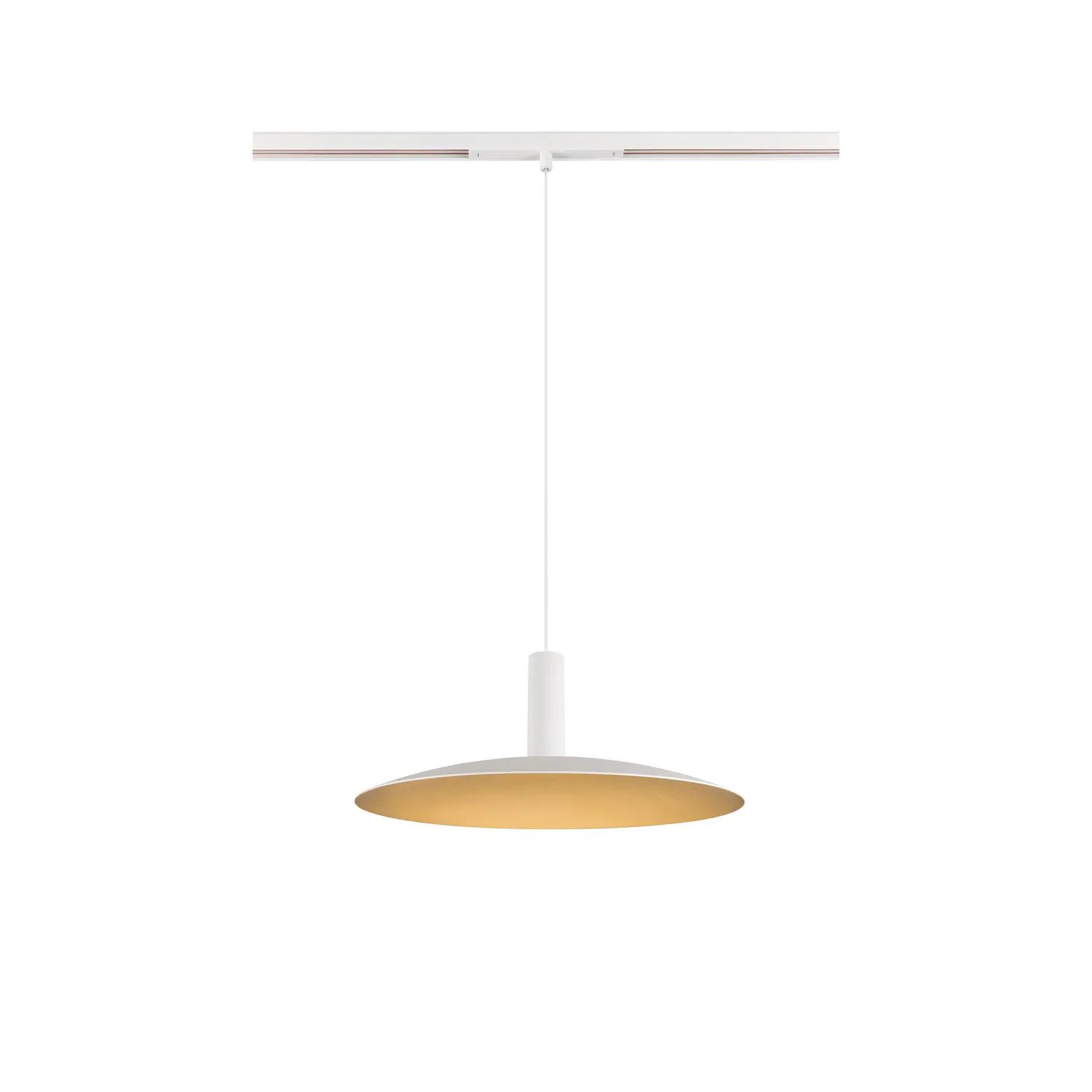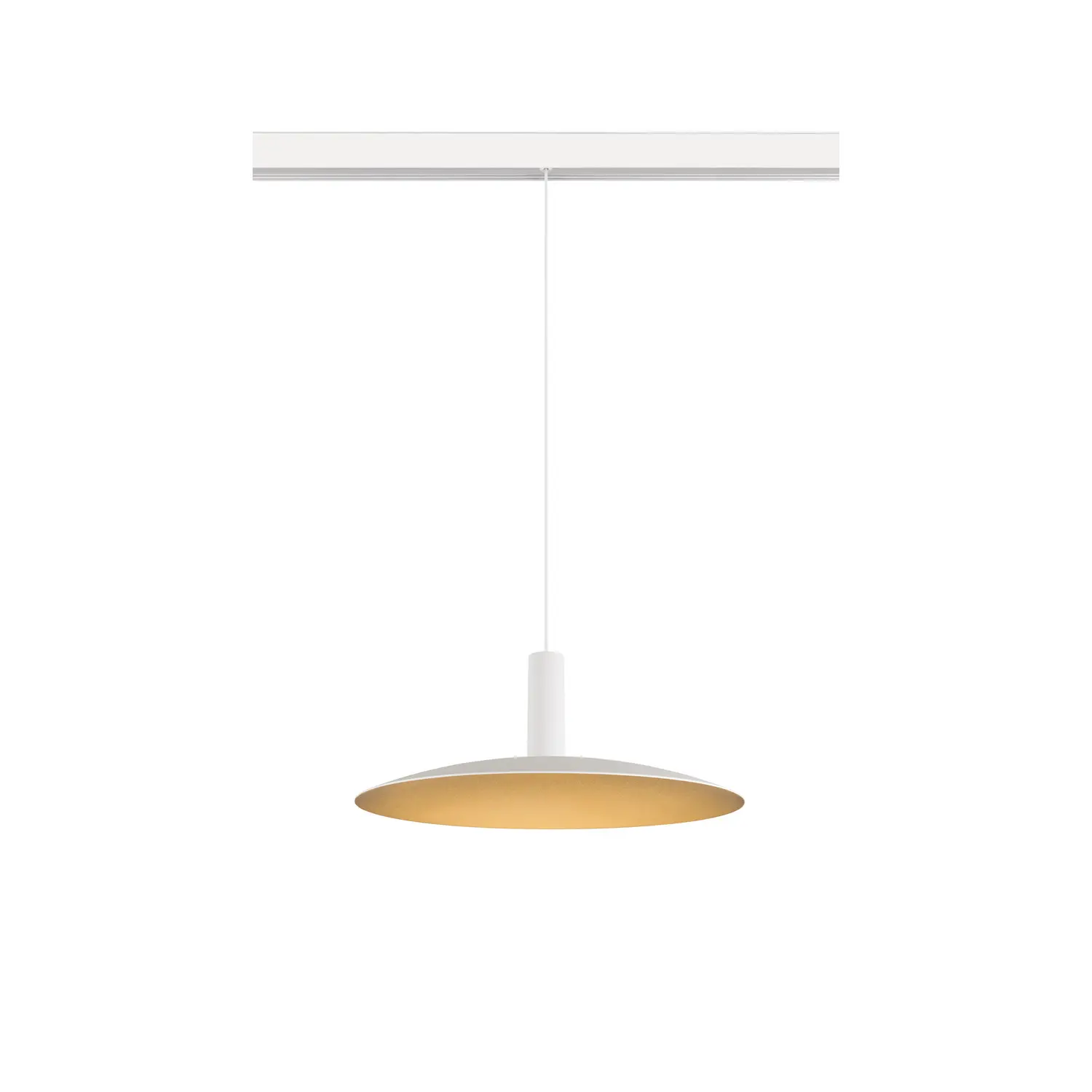 SLV Lalu Elypse 33 48V LED-Hängeleuchte 1007748 mit 1007540 trägt ein Lampengehäuse aus hochwertigem Aluminium in der Farbe weiß, der superflache Lampenschirm ist zudem innenseitig goldfarben beschichtet. Die SLV Lalu Elypse 33 48V LED-Hängeleuchte hat eine Gesamtleistung von 8 Watt, einen Lichtstrom von 700 Lumen mit einer warmweißen Lichtfarbe von 3000 Kelvin, einem Abstrahlwinkel von 40° und ist DALI dimmbar. Die 150cm lange Textilleitung lässt sich individuell einkürzen und mündet an einen 48V-Adapter zum einbringen ins 48V Schienensystem. Unsere SLV Lalu Elypse 33 48V LED-Hängeleuchte hat eine Lebensdauer von 50.000 Stunden, welche der Hersteller mit 5 Jahren Garantie absichert.