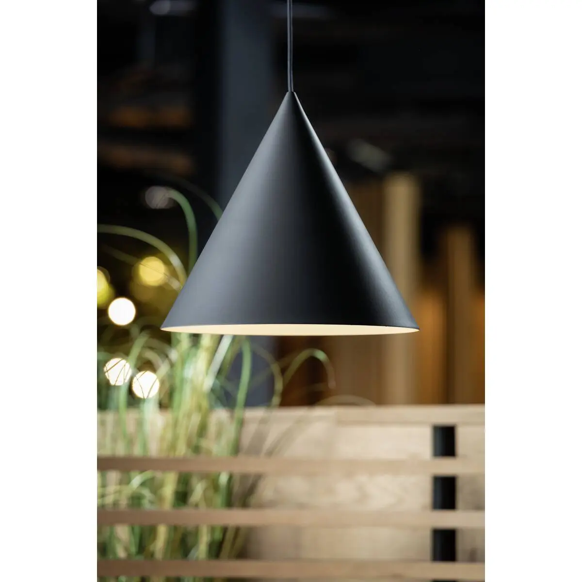 SLV Magico Hängeleuchte 1008505 trägt mit ihrem Design einen edlen Charakter in den Raum, wobei der konisch geformte Lampenschirm die Blicke auf sich zieht. Sie besteht aus hochwertigem Aluminium in der Farbe schwarz matt und misst einen Durchmesser von 38cm, eine Höhe mit 35cm sowie eine individuell kürzbare Textilleitung von 180cm. Die SLV Magico Hängeleuchte ist innenseitig goldfarben beschichtet, was für eine warme Lichtatmosphäre und Wohlfühlmomente sorgt. Versehen ist sie mit einer E27 Fassung zur Aufnahme von LED-Lampen mit einer maximalen Leistung von 10 Watt, welche als externes Zubehör zur Auswahl stehen. Unsere SLV Magico Hängeleuchte ist mit einem offenem Kabelende versehen, da ihr ebenfalls als externes Zubehör Deckenrosetten, 1 Phasen Adapter und 3 Phasen Adapter zur Auswahl stehen.