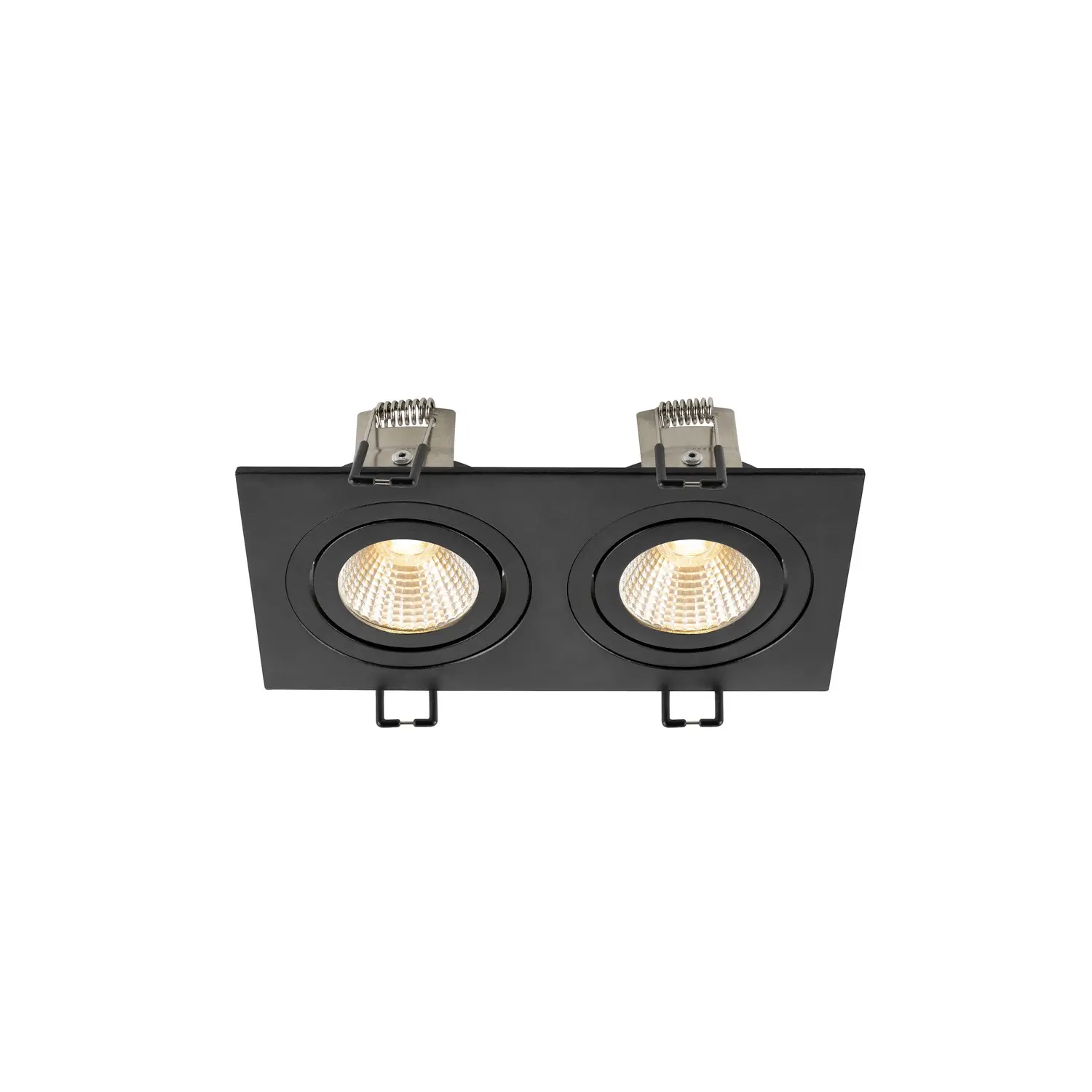 SLV New Tria LED-Einbaustrahler 1008512 verfügt über zwei dreh & schwenkbare Spots die das Licht flexibel in den Raum abgeben. Er ist dimmbar und lässt sich über einen Phasenabschnitts- oder einem Phasenanschnitts-Dimmer regulieren. Der SLV New Tria LED-Einbaustrahler hat eine Gesamtleistung von 14 Watt, bei einem Gesamtlichtstrom von 1220 Lumen und eine warmweiße Lichtfarbe in 2700 Kelvin. Die Lebensdauer beträgt 50.000 Stunden, welche der Hersteller mit 5 Jahren Garantie absichert. Unser SLV New Tria LED-Einbaustrahler ist aus Aluminium in der Farbe schwarz hergestellt und misst eine Länge von 17cm und eine Breite mit 9cm. Die Einbaulänge hingegen ist 15.5cm, mit einer Einbaubreite von 7.8cm und einer Einbautiefe von 5cm.