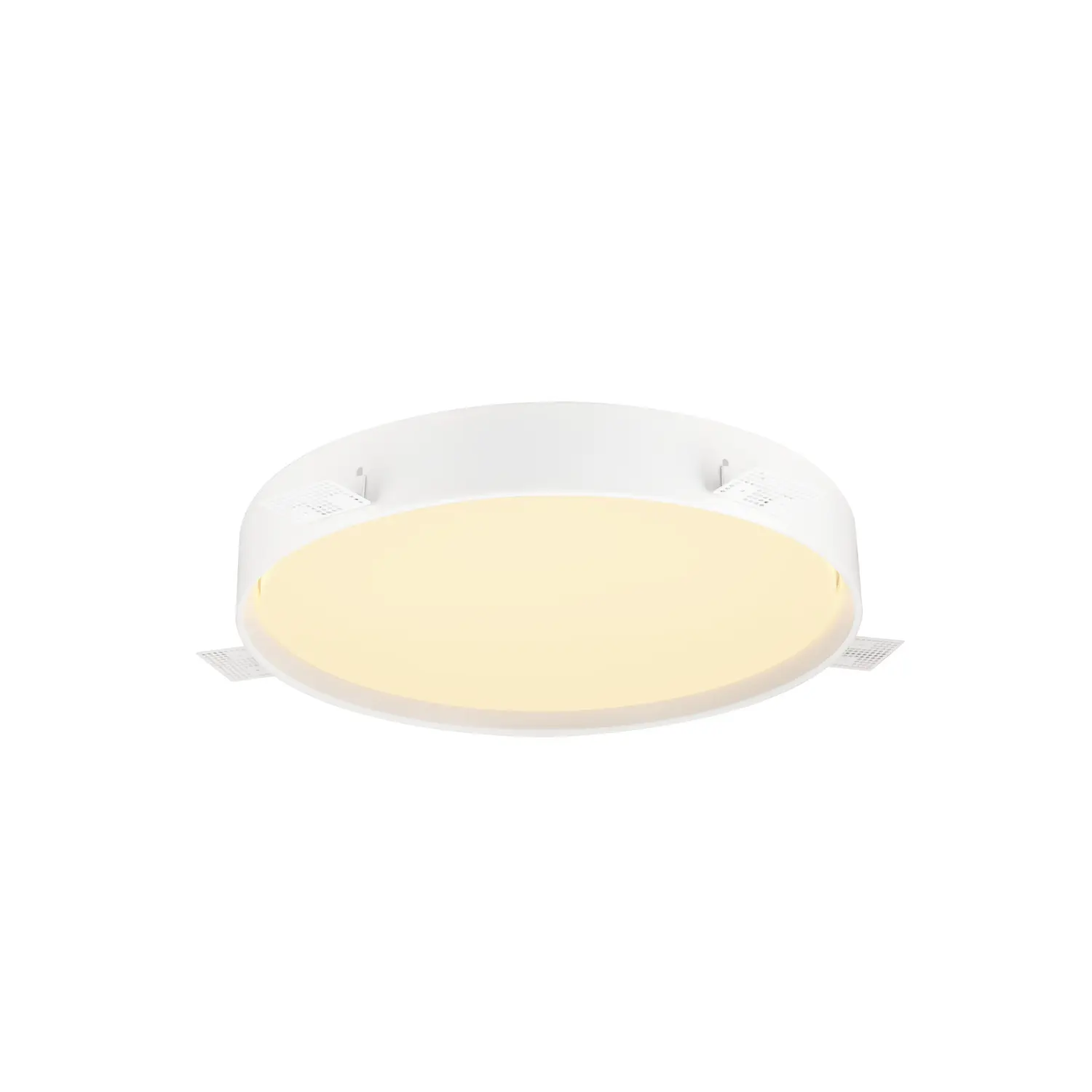 SLV Decona 40 Einbaurahmen 1008586 macht aus der Aufbaudeckenleuchte eine Einbauleuchte, ist aus dem Material Aluminium in der Farbe weiß hergestellt und misst einen Durchmesser von 43.3cm, mit einer Höhe in 7.5cm.