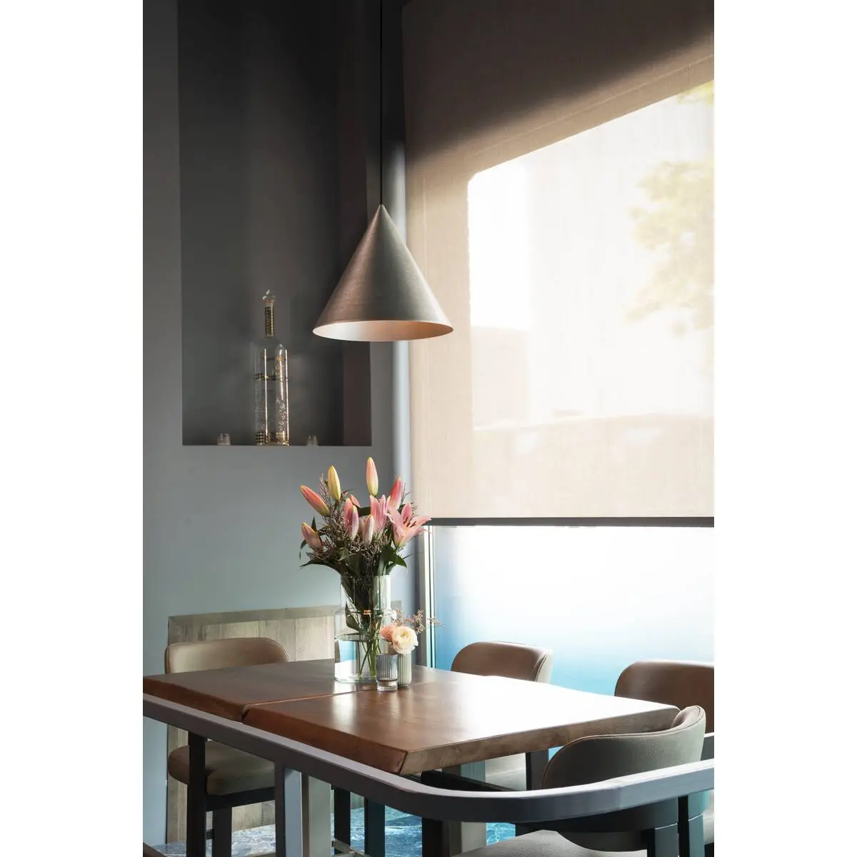 SLV Magico 38 Hängelampe 1009136 setzt mit ihrem konisch zulaufendem Lampenschirm klare Statements und tritt in der Trendfarbe aluminium mit Designcharakter in den Vordergrund. Als externes Zubehör stehen ihr Einbau und Aufbau Deckenrosetten sowie 1-Phasen und 3-Phasen Adapter zur Auswahl, die mit dem offenem Kabelende verbunden werden können. Die SLV Magico 38 Hängelampe ist mit einer E27-Fassung versehen, zum selber wechseln von Lampen mit einer maximalen Leistung von 10 Watt, welche passend als Zubehör mitbestellt werden können. Unsere SLV Magico 38 Hängelampe trägt eine hohe Qualität, die der Hersteller zudem mit 5 Jahren Garantie absichert. Der Lampenschirm besteht aus hochwertigem Aluminium und misst einen Durchmesser von 38cm, eine Höhe in 35cm und mündet an einer schwarzen Textilleitung mit 180cm Länge, welche sich individuell kürzen lässt.