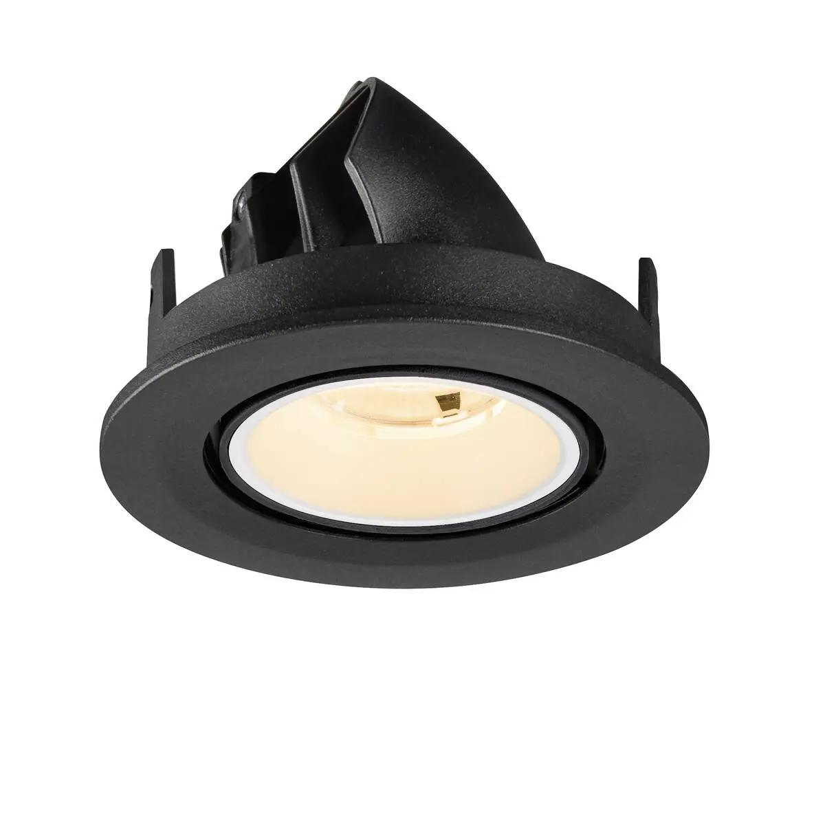 SLV Numinos Gimble S LED-Einbauleuchte 1009380 verleiht gelungenen Projekten mit schwarzem Gehäuse und Kontrast weiß abgesetztem Reflektor moderne Statements und lässt sich als Highlight bis zu 60° schwenken und um 355° drehen, wodurch sie sich ideal für kreative Lichtprojekte eignet. Ausgerüstet mit CRI 90 sorgt sie für eine natürlich brillante Farbwiedergabe und stellt den Innenraum so bestmöglich in den Vordergrund, wobei er mit UGR19 zudem nahezu blendfrei scheint. Die SLV Numinos Gimble S LED-Einbauleuchte leistet 6.7 Watt, bei einem Lichtstrom von 1000 Lumen, mit einer gemütlich warmweißen Farbtemperatur in 2700 Kelvin und einem Abstrahlwinkel in 20° und erzielt so effiziente 149 Lumen pro Watt. Ihre Qualität ist mit 50.000 Lebensstunden in L90B10 hoch, die der Hersteller zudem mit 5 Jahren Garantie absichert. Unsere SLV Numinos Gimble S LED-Einbauleuchte besitzt ein Lampengehäuse aus hochwertigem Aluminium und misst einen Durchmesser von 10cm, einen Einbaudurchmesser mit 9cm sowie eine Einbautiefe in 7cm. Als Zubehör stehen ihr LED-Treiber in On/Off, dimmbar und DALI zur Auswahl - ebenso Diffusoren für verschiedene Lichtauslässe und Reflektoren für einen trendigen Look.