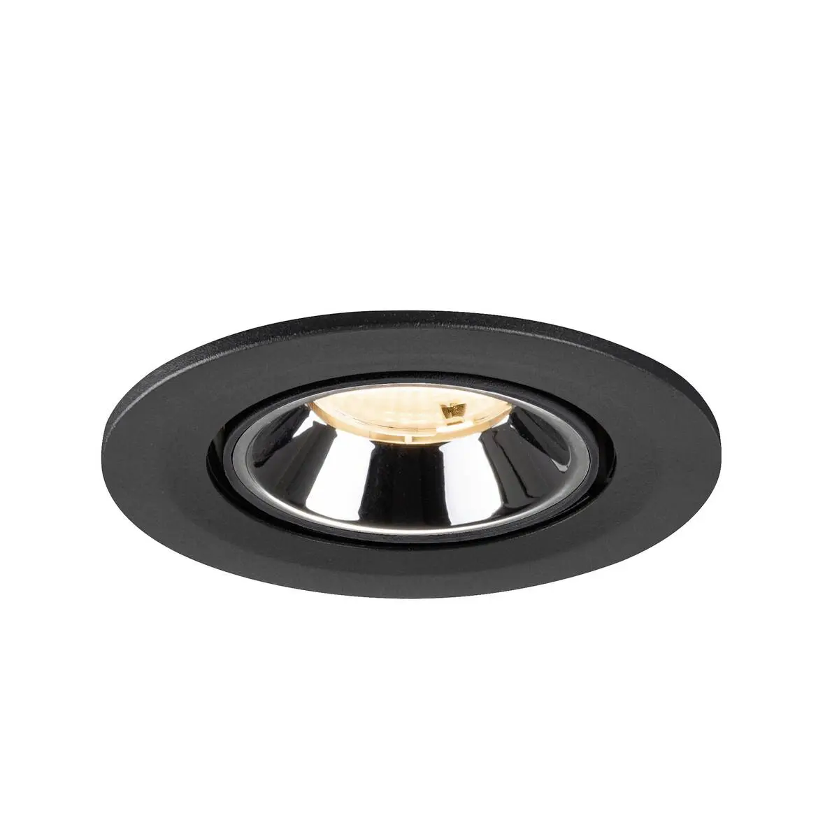 SLV Numinos Gimble S LED-Einbauleuchte 1009387 sticht mit einem schwarzen Gehäuse und Kontrast chromfarbig abgesetztem Reflektor modern in den Vordergrund und ist als Highlight bis zu 60° schwenkbar und um 355° drehbar, was sie zu einer flexiblen Beleuchtungslösung macht. Ausgerüstet mit CRI 90 sorgt sie für eine natürlich brillante Farbwiedergabe und setzt das Raumkonzepte stilvoll in Szene. Die SLV Numinos Gimble S LED-Einbauleuchte leistet 6.7 Watt, bei einem Lichtstrom von 1000 Lumen, mit einer gemütlich warmweißen Farbtemperatur in 2700 Kelvin und einem Abstrahlwinkel in 55° und erzielt so effiziente 149 Lumen pro Watt. Mit einer hohen Qualität von 50.000 Lebensstunden in L90B10, gewährt der Hersteller zudem 5 Jahre Garantie. Unsere SLV Numinos Gimble S LED-Einbauleuchte besitzt ein Lampengehäuse aus hochwertigem Aluminium und misst einen Durchmesser von 10cm, einen Einbaudurchmesser mit 9cm sowie eine Einbautiefe in 7cm. Als Zubehör stehen ihr LED-Treiber in On/Off, dimmbar und DALI zur Verfügung - ebenso Diffusoren für verschiedene Lichtauslässe und Reflektoren für einen trendigen Look.