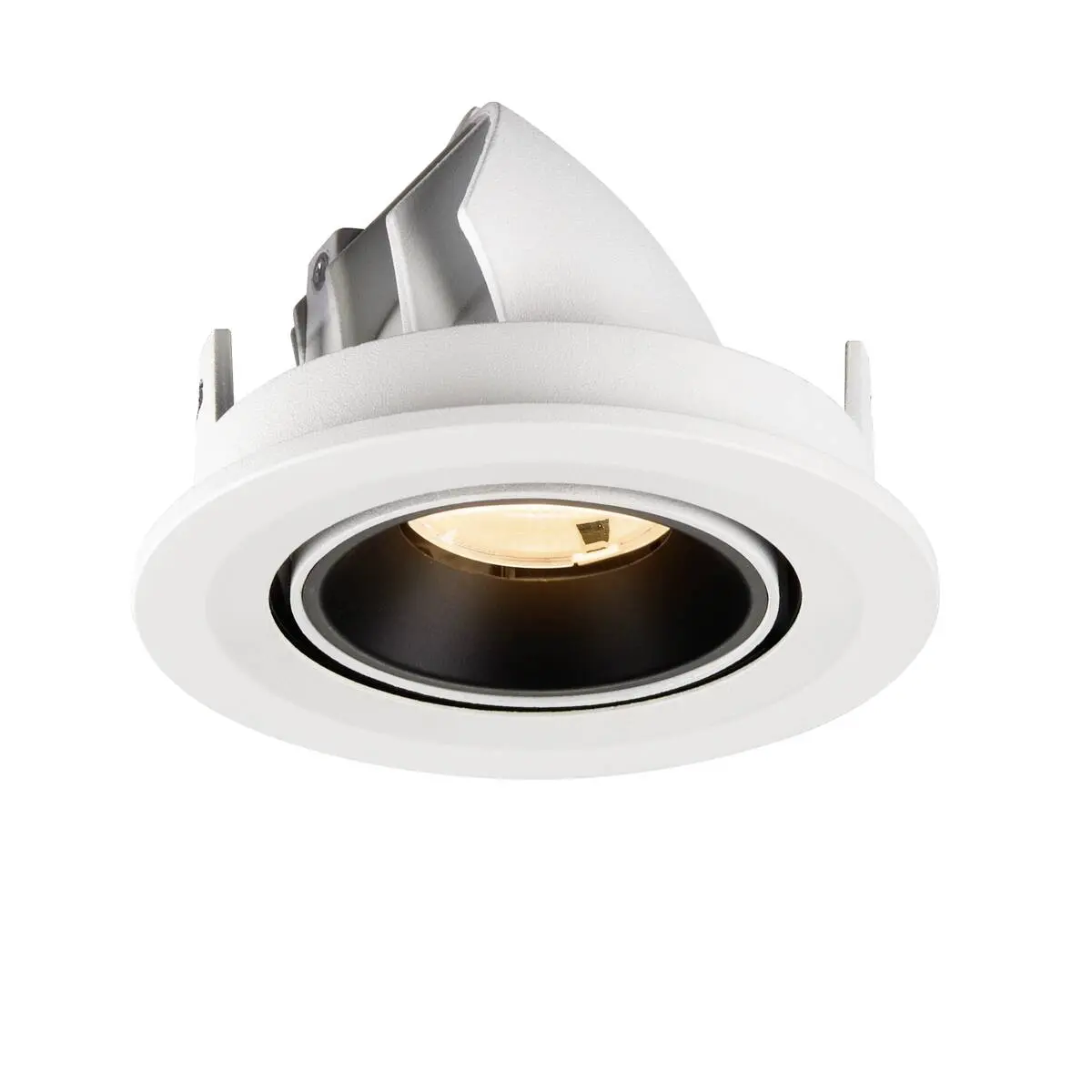 SLV Numinos Gimble S LED-Einbauleuchte 1009388 überzeugt mit einem modernen weißen Gehäuse und Kontrast schwarzem Reflektor und lässt sich als Highlight bis zu 60° schwenken und um 355° drehen, wodurch er sich als flexible Beleuchtungslösung für gelungenen Projekte eignet. Ausgerüstet mit CRI 90 sorgt er für eine natürlich brillante Farbwiedergabe, wodurch sie den Innenraum stilvoll in Szene setzt und mit UGR19 zudem nahezu blendfrei scheint. Die SLV Numinos Gimble S LED-Einbauleuchte leistet 6.7 Watt, bei einem Lichtstrom von 1000 Lumen, mit einer gemütlich warmweißen Farbtemperatur in 2700 Kelvin und einem Abstrahlwinkel in 20° und erzielt so effiziente 149 Lumen pro Watt. Ihre Qualität ist mit langlebigen 50.000 Stunden in L90B10 hoch, die der Hersteller zudem mit 5 Jahren Garantie absichert. Unsere SLV Numinos Gimble S LED-Einbauleuchte besitzt ein Gehäuse aus hochwertigem Aluminium und misst einen Durchmesser von 10cm, einen Einbaudurchmesser mit 9cm sowie eine Einbautiefe in 7cm. Als Zubehör stehen ihr LED-Treiber in On/Off, dimmbar und DALI zur Verfügung - ebenso Diffusoren für verschiedene Lichtauslässe und Reflektoren für einen trendigen Look.