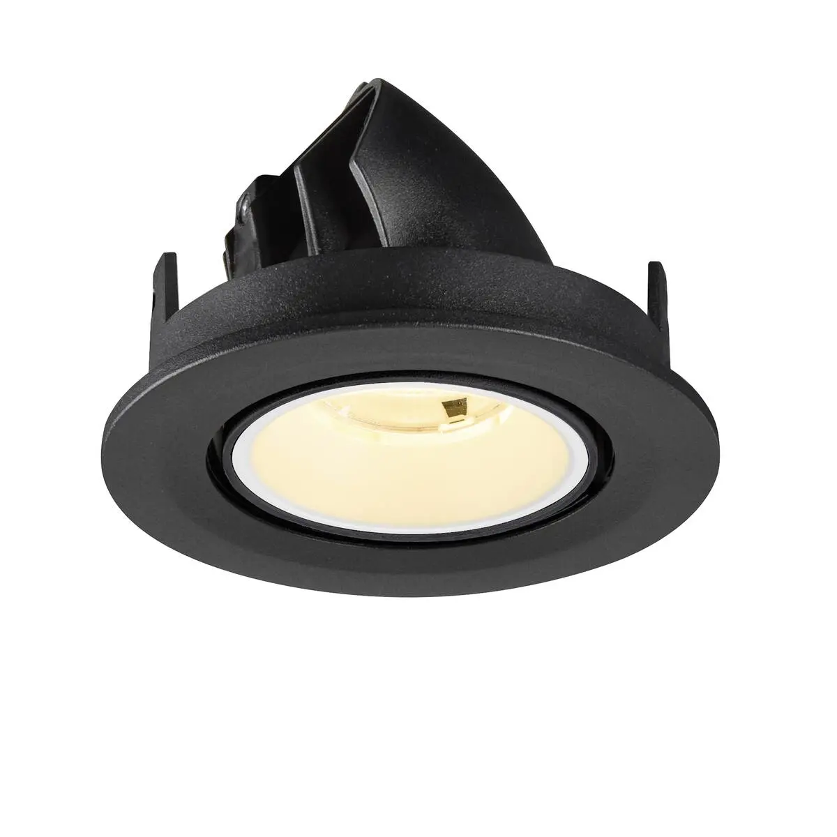 SLV Numinos Gimble S LED-Einbauleuchte 1009398 verleiht gelungenen Raumkonzepten mit schwarzem Gehäuse und Kontrast weiß abgesetztem Reflektor moderne Statements und lässt sich als Highlight bis zu 60° schwenken und um 355° drehen, wodurch sie sich hervorragend für kreative Lichtprojekte eignet. Ausgerüstet mit CRI 90 sorgt sie für eine natürlich brillante Farbwiedergabe und setzt den Innenraum stilvoll in Szene, wobei sie dieses mit UGR19 zudem nahezu blendfrei macht. Die SLV Numinos Gimble S LED-Einbauleuchte leistet 6.7 Watt, bei einem Lichtstrom von 1050 Lumen, mit einer warmweißen Farbtemperatur in 3000 Kelvin und einem Abstrahlwinkel in 20° und erzielt so effiziente 156 Lumen pro Watt. Mit einer hohen Qualität von 50.000 Lebensstunden in L90B10, gewährt der Hersteller zudem 5 Jahre Garantie. Unsere SLV Numinos Gimble S LED-Einbauleuchte besitzt ein Lampengehäuse aus hochwertigem Aluminium und misst einen Durchmesser von 10cm, einen Einbaudurchmesser mit 9cm sowie eine Einbautiefe in 7cm. Als Zubehör stehen ihr LED-Treiber in On/Off, dimmbar und DALI zur Verfügung - ebenso Diffusoren für verschiedene Lichtauslässe und Reflektoren für einen trendigen Look.