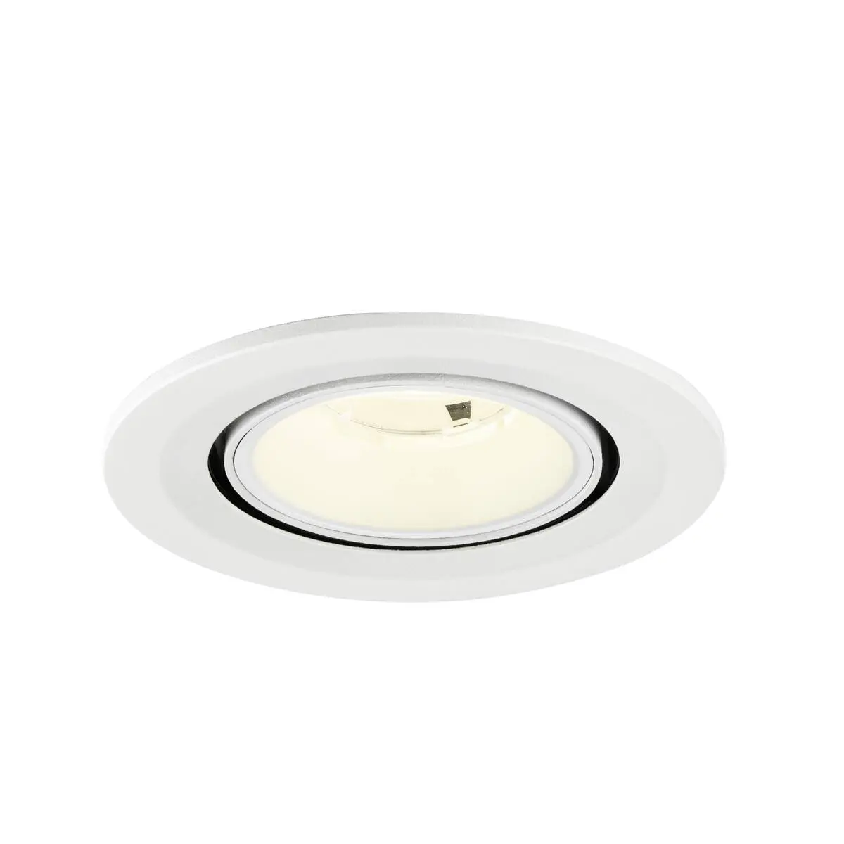 SLV Numinos Gimble S LED-Einbauleuchte 1009425 verleiht gelungenen Raumkonzepten mit Lichtqualität den richtigen Glanz und ist als Highlight um 60° schwenkbar und um 355° drehbar, was sie zu einer flexiblen Beleuchtungslösung macht. Ausgerüstet mit CRI 90 sorgt sie für eine natürlich brillante Farbwiedergabe und stellt den Innenraum bestmöglich in Szene, wobei sie dieses mit UGR19 zudem nahezu blendfrei macht. Die SLV Numinos Gimble S LED-Einbauleuchte leistet 6.7 Watt, bei einem Lichtstrom von 1050 Lumen, mit einer neutralweißen Farbtemperatur in 4000 Kelvin und einem Abstrahlwinkel in 20° und erzielt so effiziente 156 Lumen pro Watt. Ihre Qualität ist mit langlebigen 50.000 Stunden in L90B10 hoch, die der Hersteller zudem mit 5 Jahren Garantie absichert. Unsere SLV Numinos Gimble S LED-Einbauleuchte besitzt ein weißes Lampengehäuse aus hochwertigem Aluminium und misst einen Durchmesser von 10cm, einen Einbaudurchmesser mit 9cm sowie eine Einbautiefe in 7cm. Als Zubehör stehen ihr LED-Treiber in On/Off, dimmbar und DALI zur Verfügung - ebenso Diffusoren für verschiedene Lichtauslässe und Reflektoren für einen trendigen Look.