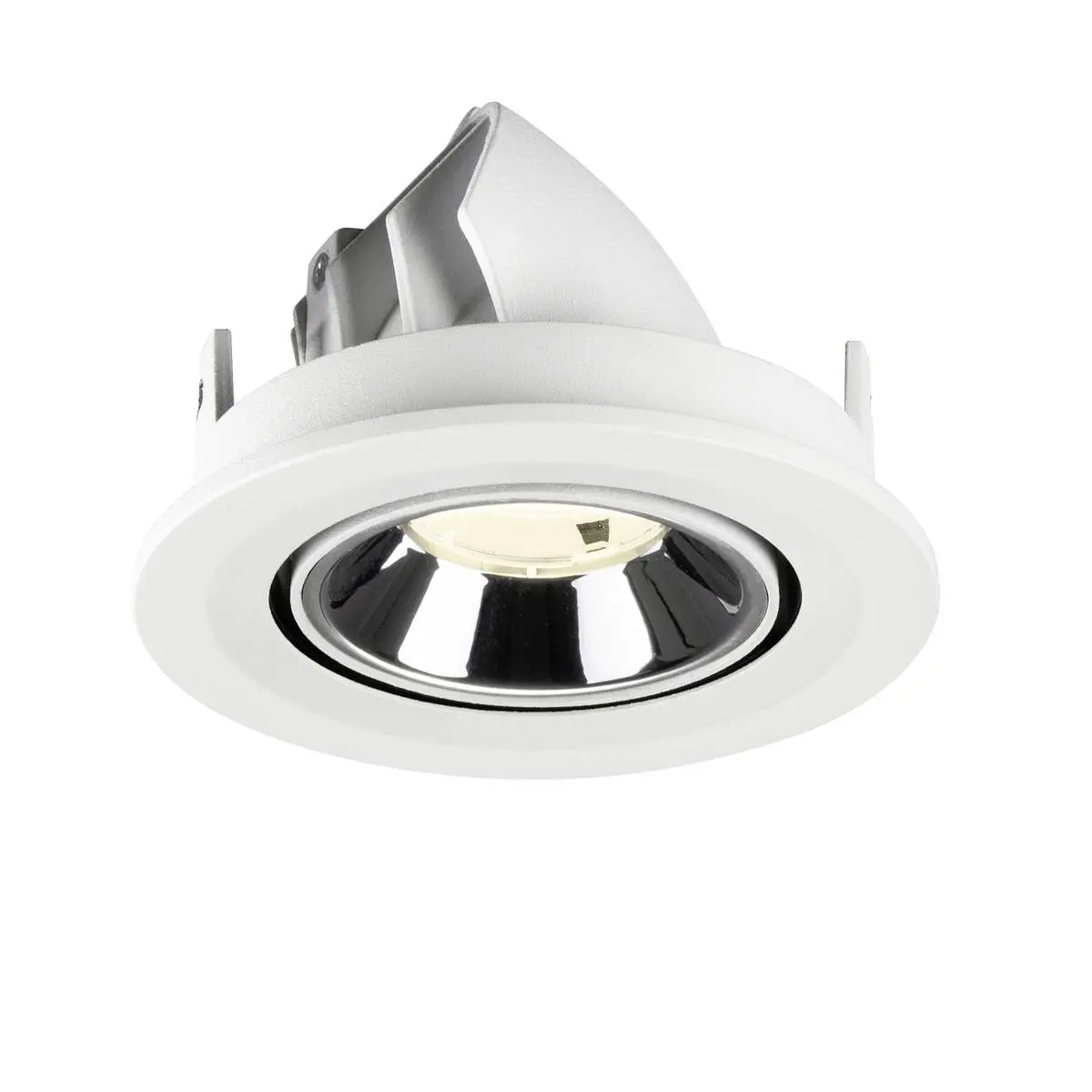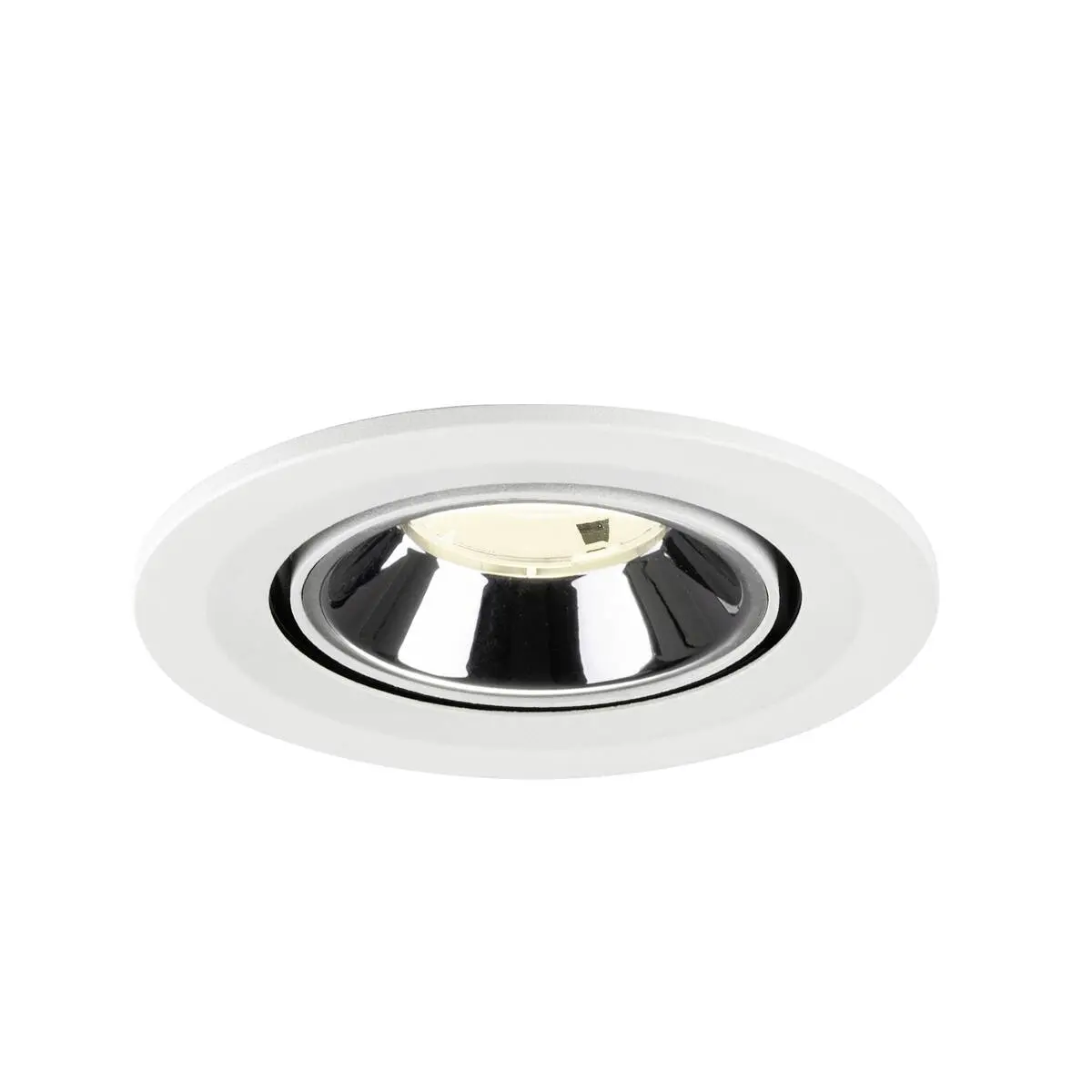 SLV Numinos Gimble S LED-Einbauleuchte 1009426 verleiht gelungenen Projekten mit weißem Gehäuse und Kontrast chromfarbigem Reflektor hochwertige Statements und ist als Highlight bis zu 60° schwenkbar und um 355° drehbar, was sie zu einer flexiblen Beleuchtungslösung macht. Ausgerüstet mit CRI 90 sorgt sie für eine natürlich brillante Farbwiedergabe und setzt den Innenraum so stilvoll in Szene, wobei sie dieses mit UGR19 zudem nahezu blendfrei macht. Die SLV Numinos Gimble S LED-Einbauleuchte leistet 6.7 Watt, bei einem Lichtstrom von 1050 Lumen, mit einer neutralweißen Farbtemperatur in 4000 Kelvin und einem Abstrahlwinkel in 20° und erzielt so effiziente 156 Lumen pro Watt. Mit einer hohen Qualität von 50.000 Lebensstunden in L90B10, gewährt der Hersteller zudem 5 Jahre Garantie. Unsere SLV Numinos Gimble S LED-Einbauleuchte besitzt ein Leuchtengehäuse aus hochwertigem Aluminium und misst einen Durchmesser von 10cm, einen Einbaudurchmesser mit 9cm sowie eine Einbautiefe in 7cm. Als Zubehör stehen LED-Treiber in On/Off, dimmbar und DALI zur Verfügung - ebenso Diffusoren für verschiedene Lichtauslässe und Reflektoren für einen trendigen Look.