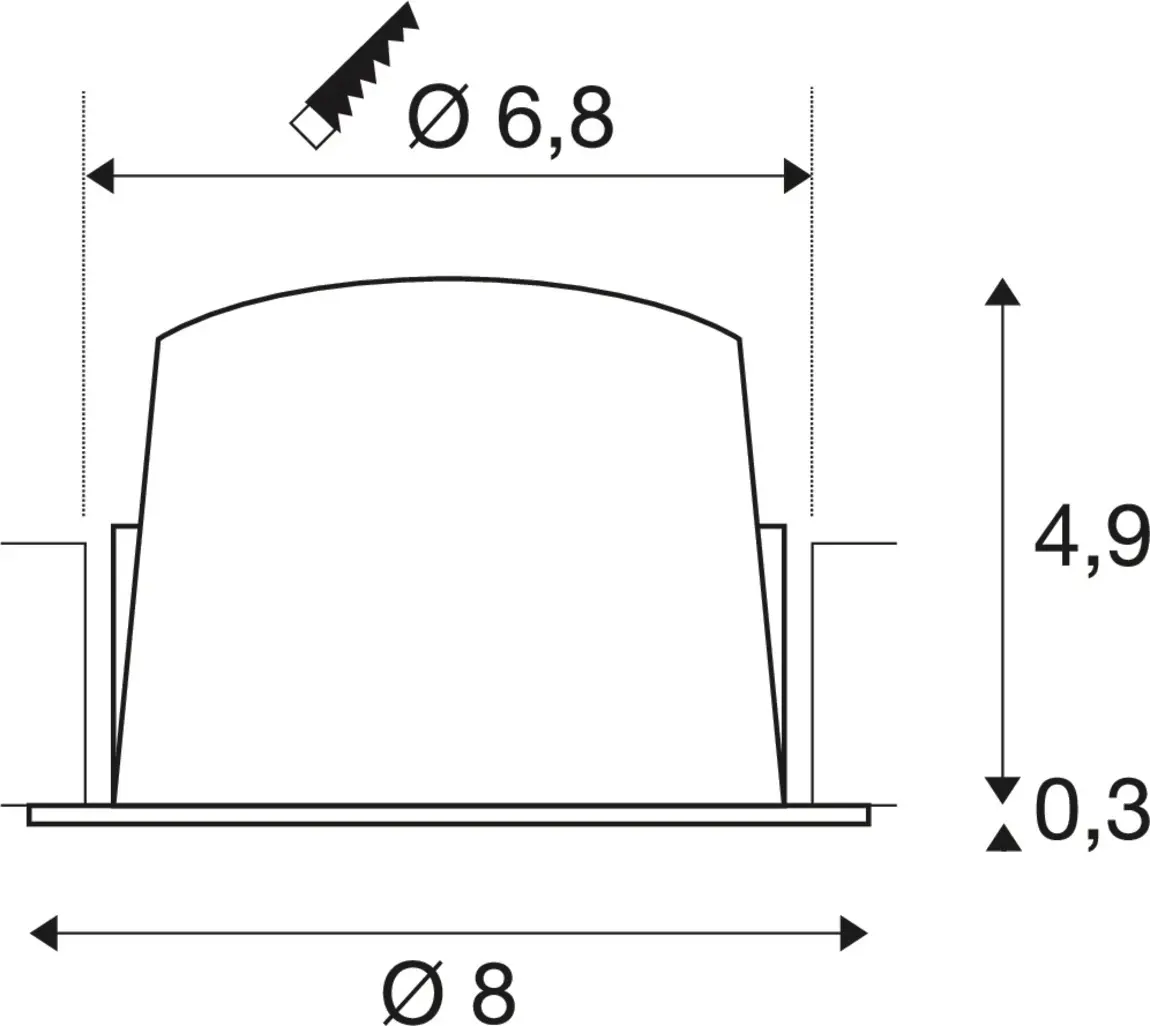 SLV Numinos S LED-Einbauspot 1009482 überzeugt mit einem runden, sauber verarbeiteten Design und verleiht der Inneneinrichtung mit rückversetzer Lichtquelle einen edlen Touch. Ausgerüstet mit CRI 90 sorgt er für eine natürlich brillante Farbwiedergabe und setzt den Raum stilvoll in Szene und mit UGR19 macht er dieses noch nahezu blendfrei. Der SLV Numinos S LED-Einbauspot leistet 6.7 Watt, bei einem Lichtstrom von 1050 Lumen, mit einer neutralweißen Farbtemperatur in 4000 Kelvin und einem Abstrahlwinkel in 40° und erzielt so effiziente 156 Lumen pro Watt. Mit einer hohen Qualität von 50.000 Lebensstunden in L90B10, gewährt der Hersteller zudem 5 Jahre Garantie. Unser SLV Numinos S LED-Einbauspot trägt ein weißes Lampengehäuse aus hochwertigem Aluminium und misst einen Durchmesser von 8cm, einen Einbaudurchmesser mit 6.8cm sowie eine Einbautiefe in 8cm. Als Zubehör stehen ihm des Weiteren LED-Treiber in On/Off, dimmbar und DALI zur Auswahl - ebenso Diffusoren für unterschiedliche Lichtauslässe und Reflektoren für einen trendigen Look.