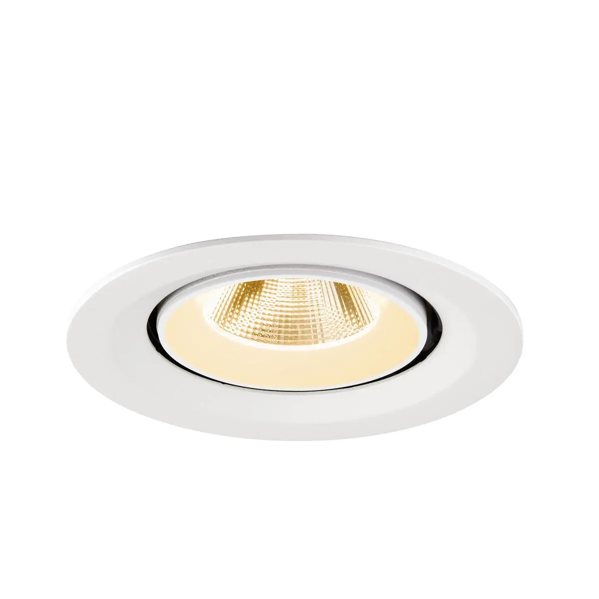 SLV Numinos Gimble M LED-Einbauleuchte 1009551 verleiht gelungenen Raumkonzepten mit Lichtqualität den nötigen Glanz und ist als Highlight bis zu 60° schwenkbar und um 355° drehbar, was sie zu einer flexiblen Beleuchtungslösung macht. Ausgerüstet mit CRI 90 sorgt sie für eine natürlich brillante Farbwiedergabe uns setzt das Interieur so stilvoll in Szene, wobei sie dieses mit UGR19 zudem nahezu blendfrei macht. Die SLV Numinos Gimble M LED-Einbauleuchte leistet 12 Watt, bei einem Lichtstrom von 1700 Lumen, mit einer gemütlich warmweißen Farbtemperatur in 2700 Kelvin und einem Abstrahlwinkel in 20° und erzielt so effiziente 141 Lumen pro Watt. Mit einer hohen Qualität von 50.000 Lebensstunden in L90B10, gewährt der Hersteller zudem 5 Jahre Garantie. Unsere SLV Numinos Gimble M LED-Einbauleuchte besitzt ein Leuchtengehäuse aus hochwertigem Aluminium und misst einen Durchmesser von 13.5cm, einen Einbaudurchmesser mit 12cm sowie eine Einbautiefe in 9.5cm. Als Zubehör stehen LED-Treiber in On/Off, dimmbar und DALI zur Verfügung - ebenso Diffusoren für verschiedene Lichtauslässe und Reflektoren für einen trendigen Look.