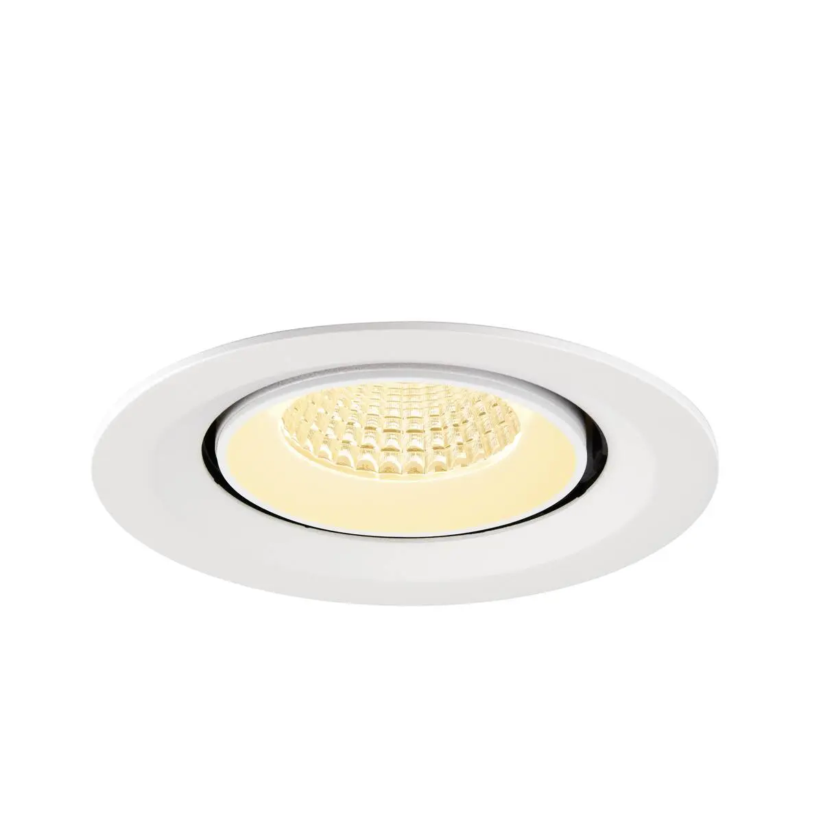 SLV Numinos Gimble M LED-Einbauleuchte 1009575 verleiht gelungenen Raumkonzepten mit Lichtqualität den nötigen Glanz und ist als Highlight bis zu 60° schwenkbar und um 355° drehbar, was sie zu einer flexiblen Beleuchtungslösung macht. Ausgerüstet mit CRI 90 sorgt sie für eine natürlich brillante Farbwiedergabe und setzt den Innenraum so stilvoll in Szene. Die SLV Numinos Gimble M LED-Einbauleuchte leistet 12 Watt, bei einem Lichtstrom von 1800 Lumen, mit einer warmweißen Farbtemperatur in 3000 Kelvin und einem Abstrahlwinkel in 55° und erzielt so effiziente 150 Lumen pro Watt. Mit einer hohen Qualität von 50.000 Stunden in L90B10, gewährt der Hersteller zudem 5 Jahre Garantie. Unsere SLV Numinos Gimble M LED-Einbauleuchte besitzt ein weißes Lampengehäuse aus hochwertigem Aluminium und misst einen Durchmesser von 13.5cm, einen Einbaudurchmesser mit 12cm sowie eine Einbautiefe in 9.5cm. Als Zubehör stehen ihr LED-Treiber in On/Off, dimmbar und DALI zur Verfügung - ebenso Diffusoren für verschiedene Lichtauslässe und Reflektoren für einen trendigen Look.