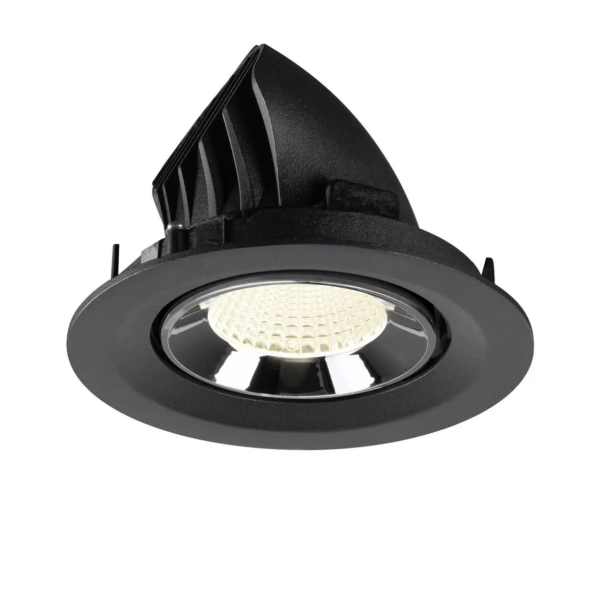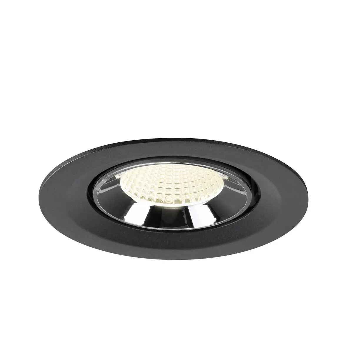 SLV Numinos Gimble M LED-Einbauleuchte 1009582 sticht mit schwarzem Gehäuse und Kontrast chromfarbig abgesetztem Reflektor gekonnt in den Vordergrund und ist als Highlight bis zu 60° schwenkbar und um 355° drehbar, was sie zu einer flexiblen Beleuchtungslösung macht. Ausgerüstet mit CRI 90 sorgt sie für eine natürlich brillante Farbwiedergabe und hebt das Interieur ins richtige Ambiente, wobei sie mit UGR19 zudem nahezu blendfrei scheint. Die SLV Numinos Gimble M LED-Einbauleuchte leistet 12 Watt, bei einem Lichtstrom von 1900 Lumen, mit einer neutralweißen Farbtemperatur in 4000 Kelvin und einem Abstrahlwinkel in 40° und erzielt so effiziente 158 Lumen pro Watt. Mit einer hohen Qualität von 50.000 Lebensstunden in L90B10, gewährt der Hersteller zudem 5 Jahre Garantie. Unsere SLV Numinos Gimble M LED-Einbauleuchte besitzt ein Lampengehäuse aus hochwertigem Aluminium und misst einen Durchmesser von 13.5cm, einen Einbaudurchmesser mit 12cm sowie eine Einbautiefe in 9.5cm. Als Zubehör werden LED-Treiber in On/Off, dimmbar und DALI angeboten - ebenso Diffusoren für verschiedene Lichtauslässe und Reflektoren für einen trendigen Look.