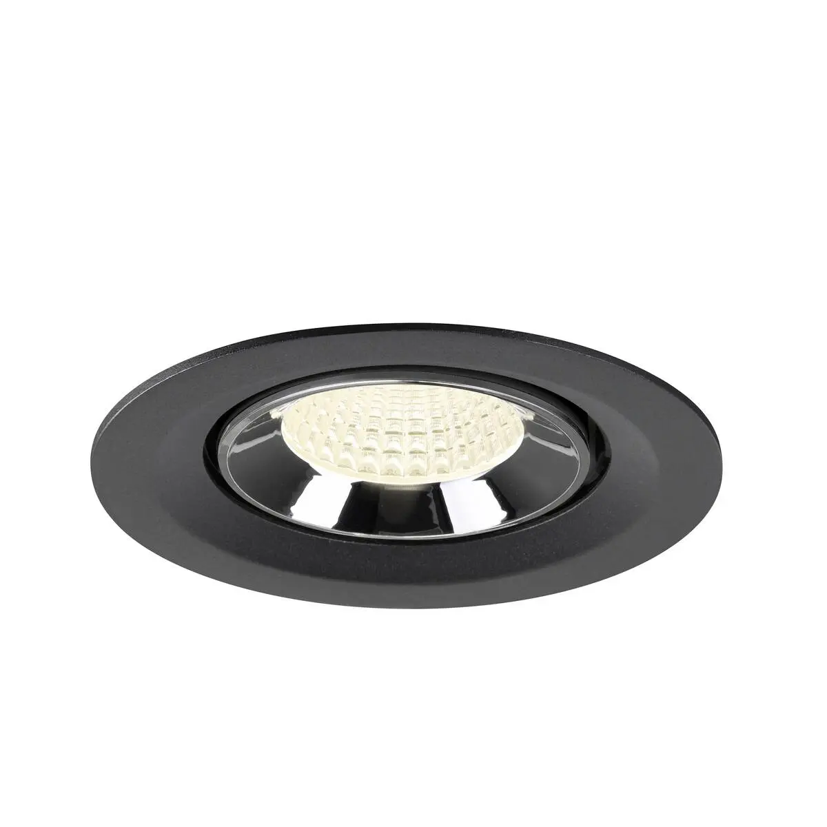 SLV Numinos Gimble M LED-Einbauleuchte 1009585 sticht mit einem schwarzen Gehäuse und Kontrast chromfarbenem Reflektor hochwertig in den Vordergrund und ist als Highlight bis zu 60° schwenkbar und um 355° drehbar, was sie zu einer flexiblen Beleuchtungslösung macht. Ausgerüstet mit CRI 90 sorgt sie für eine natürlich brillante Farbwiedergabe und hebt das Interieur ins richtige Ambiente. Die SLV Numinos Gimble M LED-Einbauleuchte leistet 12 Watt, bei einem Lichtstrom von 1900 Lumen mit einer neutralweißen Farbtemperatur in 4000 Kelvin und einem Abstrahlwinkel in 55° und erzielt so effiziente 158 Lumen pro Watt. Mit einer hohen Qualität von 50.000 Lebensstunden in L90B10, gewährt der Hersteller zudem 5 Jahre Garantie. Unsere SLV Numinos Gimble M LED-Einbauleuchte besitzt ein Lampengehäuse aus hochwertigem Aluminium und misst einen Durchmesser von 13.5cm, einen Einbaudurchmesser mit 12cm sowie eine Einbautiefe in 9.5cm. Als Zubehör stehen ihr LED-Treiber in On/Off, dimmbar und DALI zur Verfügung - ebenso Diffusoren für diverse Lichtauslässe und Reflektoren für einen trendigen Look.