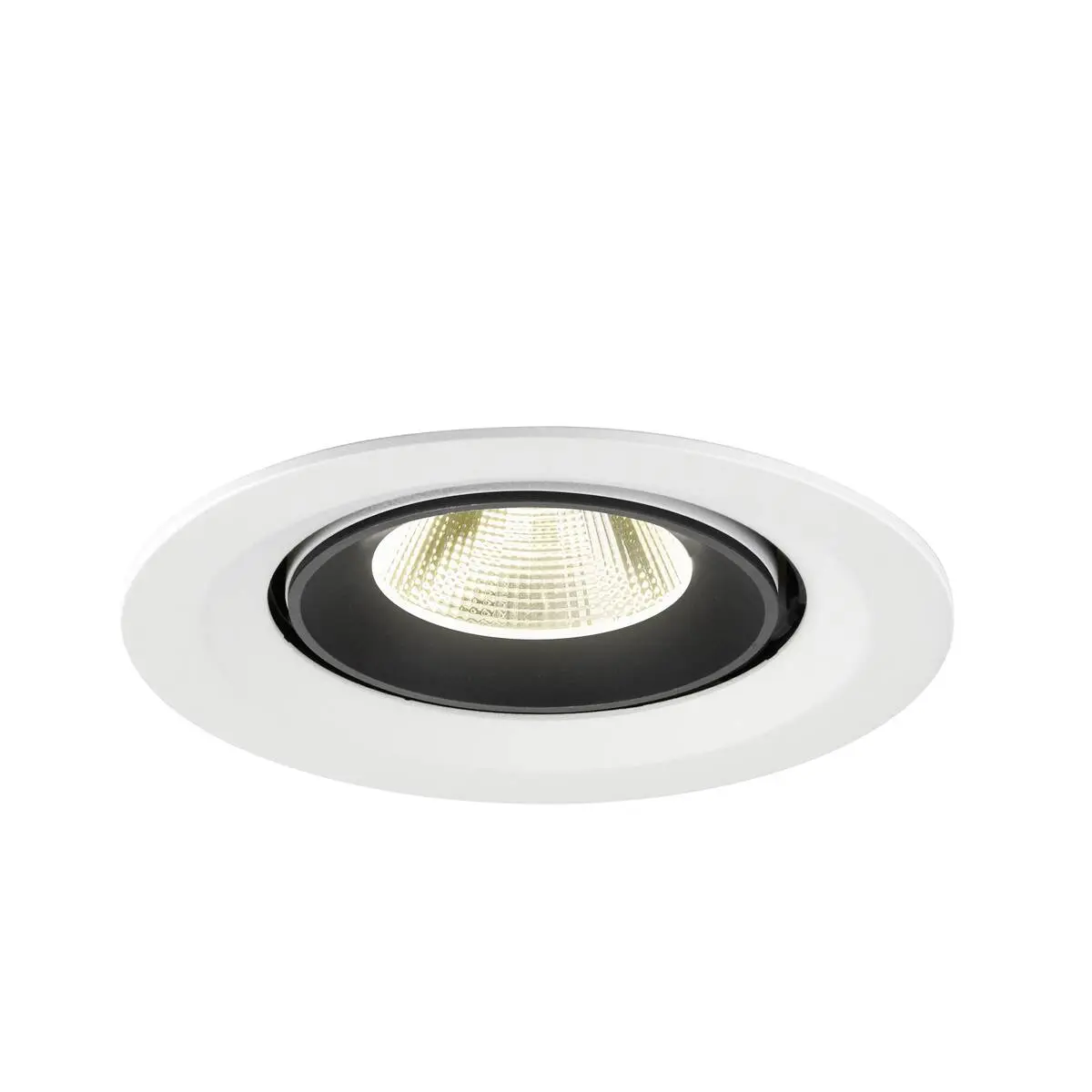 SLV Numinos Gimble M LED-Einbauleuchte 1009586 setzt mit ihrem weißen Gehäuse und Kontrast schwarz abgesetzten Reflektor Highlights in gelungenen Projekten und ist als Highlight bis zu 60° schwenkbar und um 355° drehbar, was sie zu einer flexiblen Beleuchtungslösung macht. Ausgerüstet mit CRI 90 sorgt sie für eine natürlich brillante Farbwiedergabe und setzt das Interieur so stilvoll in Szene, wobei sie dieses mit UGR19 zudem nahezu blendfrei macht. Die SLV Numinos Gimble M LED-Einbauleuchte leistet 12 Watt, bei einem Lichtstrom von 1900 Lumen, mit einer neutralweißen Farbtemperatur in 4000 Kelvin und einem Abstrahlwinkel in 20° und erzielt so effiziente 158 Lumen pro Watt. Mit einer hohen Qualität von 50.000 Lebensstunden in L90B10, gewährt der Hersteller zudem 5 Jahre Garantie. Unsere SLV Numinos Gimble M LED-Einbauleuchte besitzt ein Lampengehäuse aus hochwertigem Aluminium und misst einen Durchmesser von 13.5cm, einen Einbaudurchmesser mit 12cm sowie eine Einbautiefe in 9.5cm. Als Zubehör stehen LED-Treiber in On/Off, dimmbar und DALI zur Verfügung - ebenso Diffusoren für verschiedene Lichtauslässe und Reflektoren für einen trendigen Look.