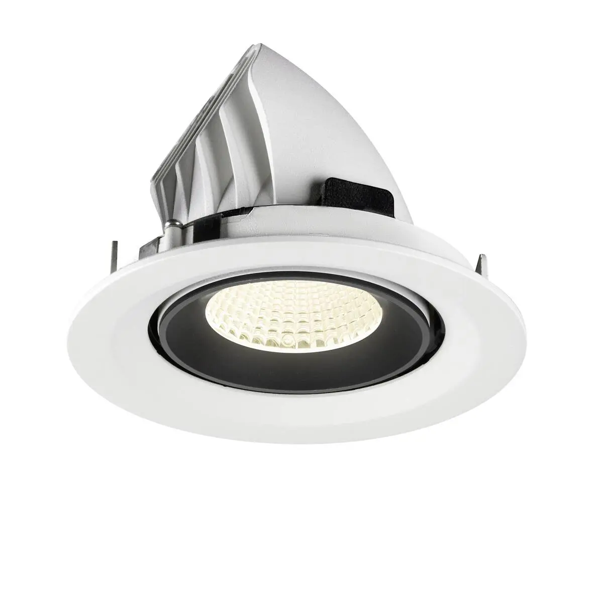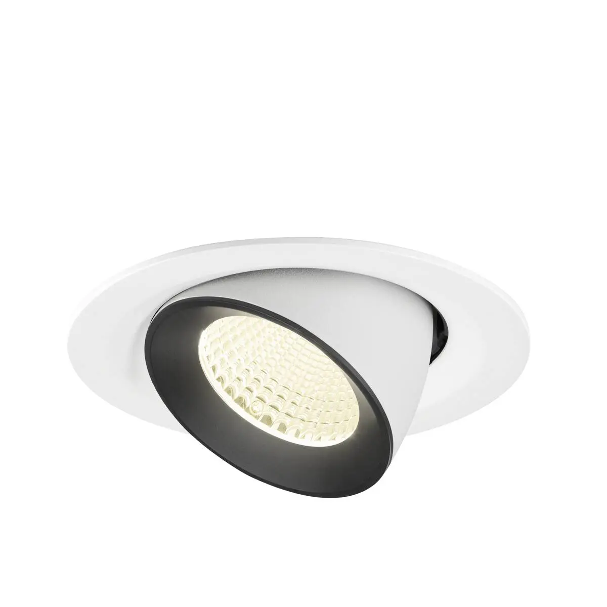 SLV Numinos Gimble M LED-Einbauleuchte 1009589 setzt mit ihrem weißen Gehäuse und Kontrast schwarz abgesetztem Reflektor Trends in jedem Raum und ist als Highlight bis zu 60° schwenkbar und um 355° drehbar, wodurch sie sich optimal als flexible Beleuchtungslösung eignet. Ausgerüstet mit CRI 90 sorgt sie für eine natürlich brillante Farbwiedergabe und setzt den Innenraum so stilvoll in Szene, wobei sie dieses mit CRI 90 zudem nahezu blendfrei macht. Die SLV Numinos Gimble M LED-Einbauleuchte leistet 12 Watt, bei einem Lichtstrom von 1900 Lumen, mit einer neutralweißen Farbtemperatur in 4000 Kelvin und einem Abstrahlwinkel in 40° und erzielt so effiziente 158 Lumen pro Watt. Mit einer hohen Qualität von 50.000 Lebensstunden in L90B10, gewährt der Hersteller zudem 5 Jahre Garantie. Unsere SLV Numinos Gimble M LED-Einbauleuchte besitzt ein Lampengehäuse aus hochwertigem Aluminium und misst einen Durchmesser von 13.5cm, einen Einbaudurchmesser mit 12cm sowie eine Einbautiefe in 9.5cm. Als Zubehör stehen ihr LED-Treiber in On/Off, dimmbar und DALI zur Verfügung - ebenso Diffusoren für verschiedene Lichtauslässe und Reflektoren für einen trendigen Look.