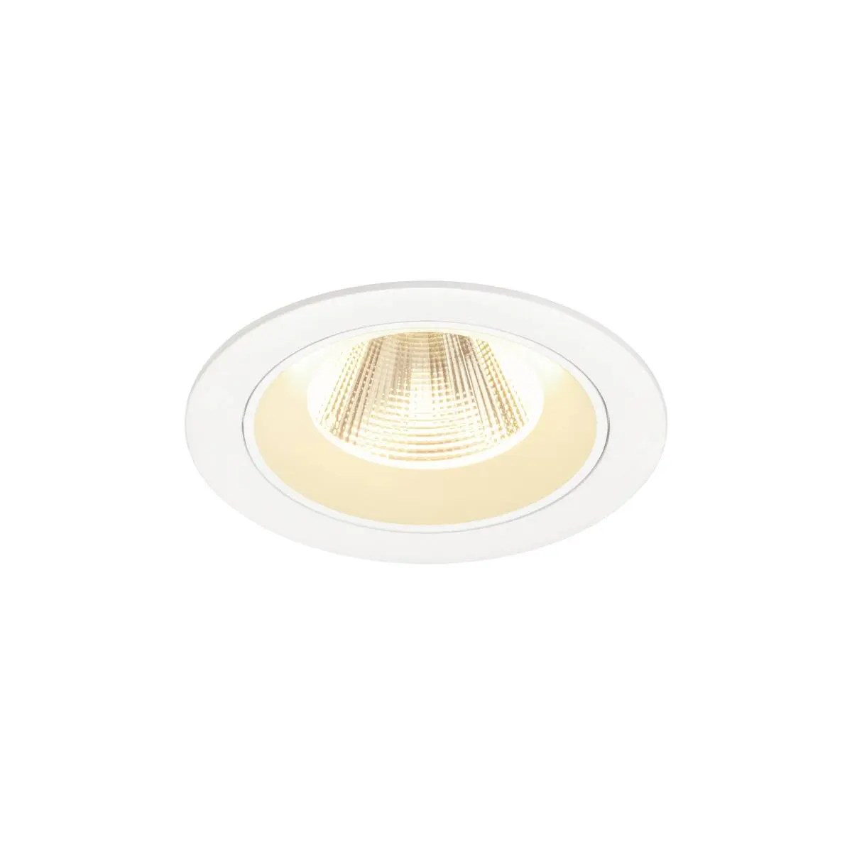 SLV Numinos M LED-Einbauspot 1009623 besitzt ein sauber verarbeitetes, rundes Design, wodurch er in gelungenen Projekten den fehlenden Lichttrend setzt. Ausgerüstet mit CRI 90 sorgt er für eine natürlich brillante Wiedergabe von Farben, weshalb er den Innenraum stilvoll in Szene setzt und mit UGR19 nahezu blendfrei scheint. Der SLV Numinos M LED-Einbauspot leistet 12 Watt, bei einem Lichtstrom von 1800 Lumen, mit einer warmweißen Farbtemperatur in 3000 Kelvin und einen Abstrahlwinkel in 20° und erzielt so effiziente 150 Lumen pro Watt. Mit einer hohen Qualität von 50.000 Lebensstunden in L90B10, gewährt der Hersteller zusätzlich 5 Jahre Garantie. Unser SLV Numinos M LED-Einbauspot besitzt ein Lampengehäuse aus hochwertigem Aluminium und misst einen Durchmesser von 10.5cm, einen Einbaudurchmesser mit 9cm sowie eine Einbautiefe in 7.5cm. Als Zubehör stehen ihm LED-Treiber in On/Off, dimmbar und DALI zur Auswahl - sowie Diffusoren für einen kreativen Lichtauslass und Reflektoren für einen trendigen Look.