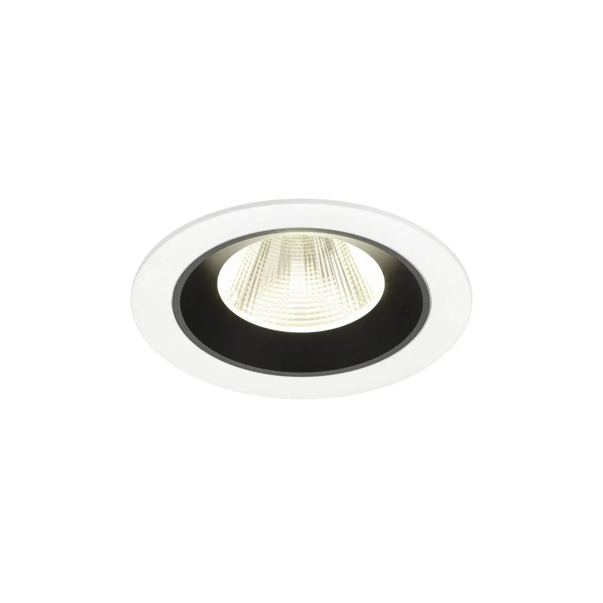 SLV Numinos M LED-Einbauspot 1009640 kommt mit einem runden, modernen Design zum Einsatz, wobei er mit seinem weißen Lampengehäuse und Kontrast schwarzen Reflektor Designtrends im Projekt hinterlässt. Ausgerüstet mit CRI 90 sorgt er für eine natürlich brillante Farbwiedergabe, womit er Akzente im Raum bestmöglich zur Schau stellt und mit UGR19 zudem nahezu blendfrei scheint. Der SLV Numinos M LED-Einbauspot leistet 12 Watt, bei einem Lichtstrom von 1900 Lumen, mit einer neutralweißen Farbtemperatur in 4000 Kelvin und einem Abstrahlwinkel in 20° und erzielt so effiziente 158 Lumen pro Watt. Mit einer hohen Qualität von 50.000 Lebensstunden in L90B10, gewährt der Hersteller zudem 5 Jahre Garantie. Unser SLV Numinos M LED-Einbauspot besitzt ein Lampengehäuse aus hochwertigem Aluminium und misst einen Durchmesser von 10.5cm, einen Einbaudurchmesser mit 9cm sowie eine Einbautiefe in 7.5cm. Als Zubehör stehen ihm LED-Treiber in On/Off, dimmbar und DALI zur Auswahl - sowie Diffusoren für verschiedene Lichtauslässe und Reflektoren für einen trendigen Look.
