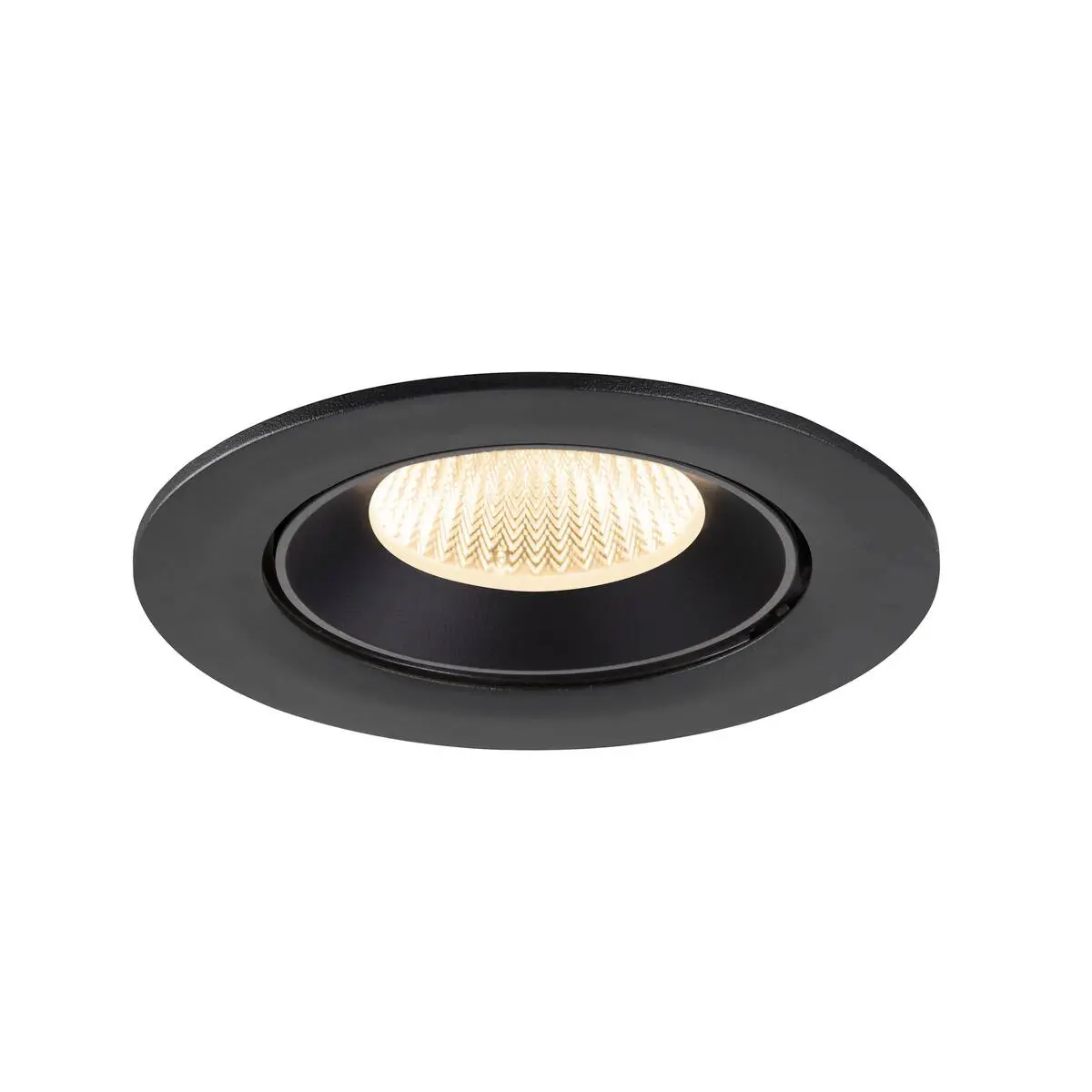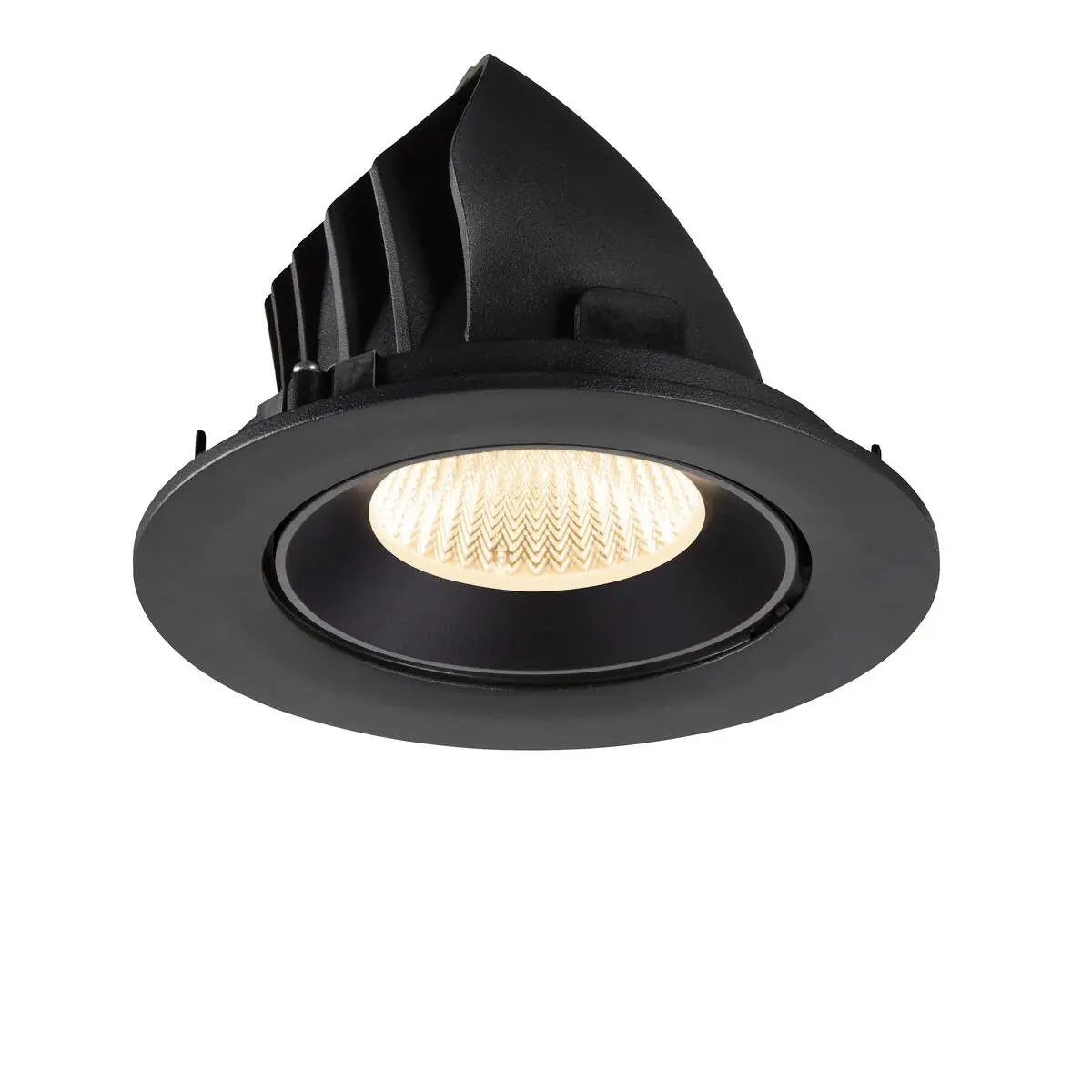 SLV Numinos Gimble L LED-Einbauleuchte 1009706 verleiht gelungenen Projekten mit Lichtqualität den nötigen Glanz und ist als Highlight bis zu 60° schwenkbar und um 355° drehbar, was sie zu einer flexiblen Beleuchtungslösung macht. Ausgerüstet mit CRI 90 sorgt sie für eine natürlich brillante Farbwiedergabe und setzt das Interieur so stilvoll in Szene. Die SLV Numinos Gimble L LED-Einbauleuchte leistet 17 Watt, bei einem Lichtstrom von 2400 Lumen, mit einer gemütlich warmweißen Farbtemperatur in 2700 Kelvin und einem Abstrahlwinkel in 40° und erzielt so effiziente 141 Lumen pro Watt. Mit einer hohen Qualität von 50.000 Stunden in L90B10, gewährt der Hersteller zudem 5 Jahre Garantie. Unsere SLV Numinos Gimble L LED-Einbauleuchte besitzt ein Lampengehäuse aus hochwertigem Aluminium und misst einen Durchmesser von 16cm, einen Einbaudurchmesser mit 14.5cm sowie eine Einbautiefe in 11.5cm. Als Zubehör stehen ihr LED-Treiber in On/Off, dimmbar und DALI zur Verfügung - ebenso Diffusoren für verschiedene Lichtauslässe und Reflektoren für einen trendigen Look.