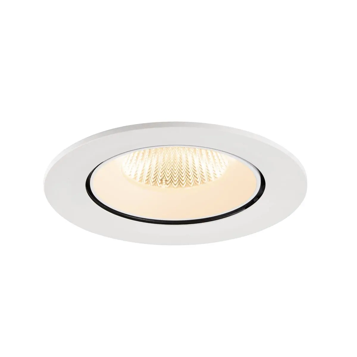 SLV Numinos Gimble L LED-Einbauleuchte 1009716 verleiht gelungenen Raumkonzepten mit Lichtqualität den richtigen Glanz und ist als Highlight bis zu 60° schwenkbar und um 355° drehbar, was sie zu einer flexiblen Beleuchtungslösung macht. Ausgerüstet mit CRI 90 sorgt sie für eine natürlich brillante Farbwiedergabe und setzt den Innenraum bestmöglich in Szene. Die SLV Numinos Gimble L LED-Einbauleuchte leistet 17 Watt, bei einem Lichtstrom von 2400 Lumen, mit einer gemütlich warmweißen Farbtemperatur in 2700 Kelvin und einem Abstrahlwinkel in 40° und erzielt so effiziente 141 Lumen pro Watt. Mit einer hohen Qualität von 50.000 Lebensstunden in L90B10, gewährt der Hersteller zudem 5 Jahre Garantie. Unsere SLV Numinos Gimble L LED-Einbauleuchte besitzt ein Lampengehäuse aus hochwertigem Aluminium und misst einen Durchmesser von 16cm, einen Einbaudurchmesser mit 14.5cm sowie eine Einbautiefe in 11.5cm. Als Zubehör stehen LED-Treiber in On/Off, dimmbar und DALI zur Verfügung - ebenso Diffusoren für verschiedene Lichtauslässe und Reflektoren für einen trendigen Look.