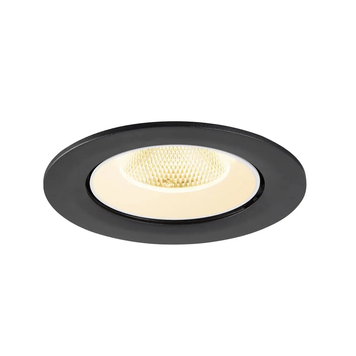 SLV Numinos Gimble L LED-Einbauleuchte 1009722 sticht mit einem schwarzen Lampengehäuse und Kontrast weiß abgesetztem Reflektor modern in den Vordergrund und ist als Highlight bis zu 60° schwenkbar und um 355° drehbar, was sie zu einer flexiblen Beleuchtungslösung macht. Ausgerüstet mit CRI 90 sorgt sie für eine natürlich brillante Farbwiedergabe und hebt das Interieur so bestmöglich in den Vordergrund, wobei sie diese mit UGR19 zudem nahezu blendfrei macht. Die SLV Numinos Gimble L LED-Einbauleuchte leistet 17 Watt, bei einem Lichtstrom von 2500 Lumen, mit einer warmweißen Farbtemperatur in 3000 Kelvin und einem Abstrahlwinkel in 20° und erzielt so effiziente 147 Lumen pro Watt. Ihre Qualität ist mit langlebigen 50.000 Stunden in L90B10 hoch, die der Hersteller zudem mit 5 Jahren Garantie absichert. Unsere SLV Numinos Gimble L LED-Einbauleuchte verfügt über ein Leuchtengehäuse aus hochwertigem Aluminium und misst einen Durchmesser von 16cm, einen Einbaudurchmesser mit 14.5cm sowie eine Einbautiefe in 11.5cm. Als Zubehör stehen ihr LED-Treiber in On/Off, dimmbar und DALI zur Verfügung - ebenso Diffusoren für verschiedene Lichtauslässe und Reflektoren für einen trendigen Look.