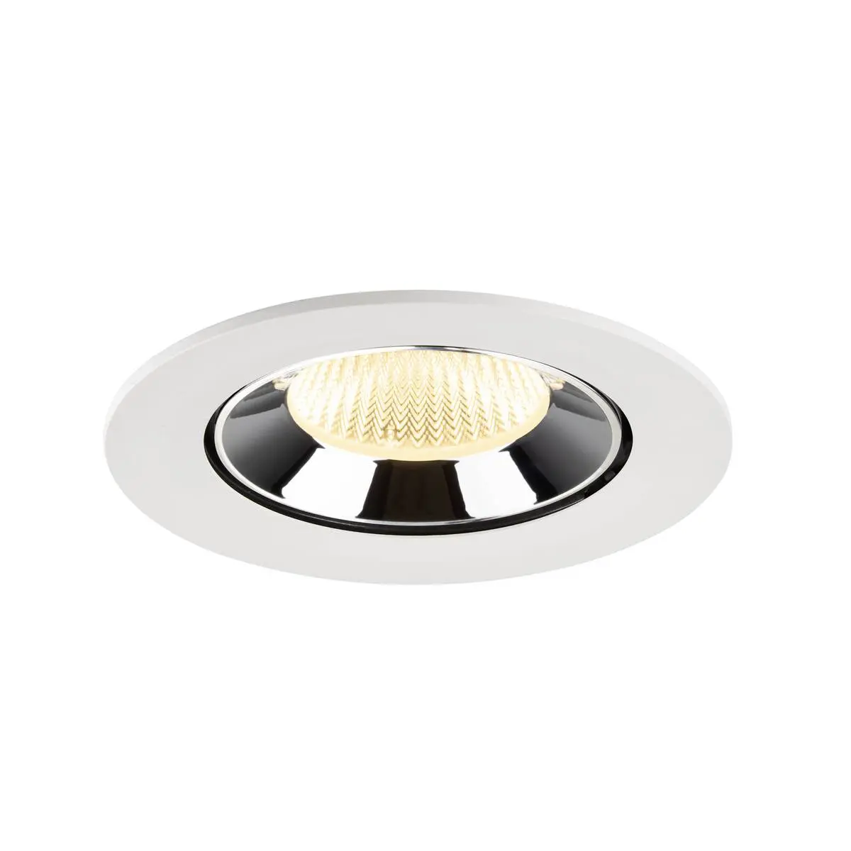 SLV Numinos Gimble L LED-Einbauleuchte 1009735 überzeugt in gelungenen Projekten mit weißem Gehäuse und Kontrast chromfarbigen Reflektor auf ganzer Linie und ist als Highlight bis zu 60° schwenkbar und um 355° drehbar. Ausgestattet mit CRI 90 sorgt sie für eine natürlich brillante Farbwiedergabe und hebt den Innenraum ins passende Ambiente. Die SLV Numinos Gimble L LED-Einbauleuchte leistet 17 Watt, bei einem Lichtstrom von 2500 Lumen, mit einer warmweißen Farbtemperatur in 3000 Kelvin und einem Abstrahlwinkel in 40° und erzielt so effiziente 147 Lumen pro Watt. Mit einer hohen Qualität von 50.000 Lebensstunden in L90B10, gewährt der Hersteller zudem 5 Jahre Garantie. Unsere SLV Numinos Gimble L LED-Einbauleuchte besitzt ein Leuchtengehäuse aus hochwertigem Aluminium und misst einen Durchmesser von 16cm, einen Einbaudurchmesser mit 14.5cm sowie eine Einbautiefe in 11.5cm. Als externes Zubehör stehen ihr LED-Treiber in On/Off, dimmbar und DALI zur Verfügung - ebenso Diffusoren für verschiedene Lichtauslässe und Reflektoren für einen trendigen Look.