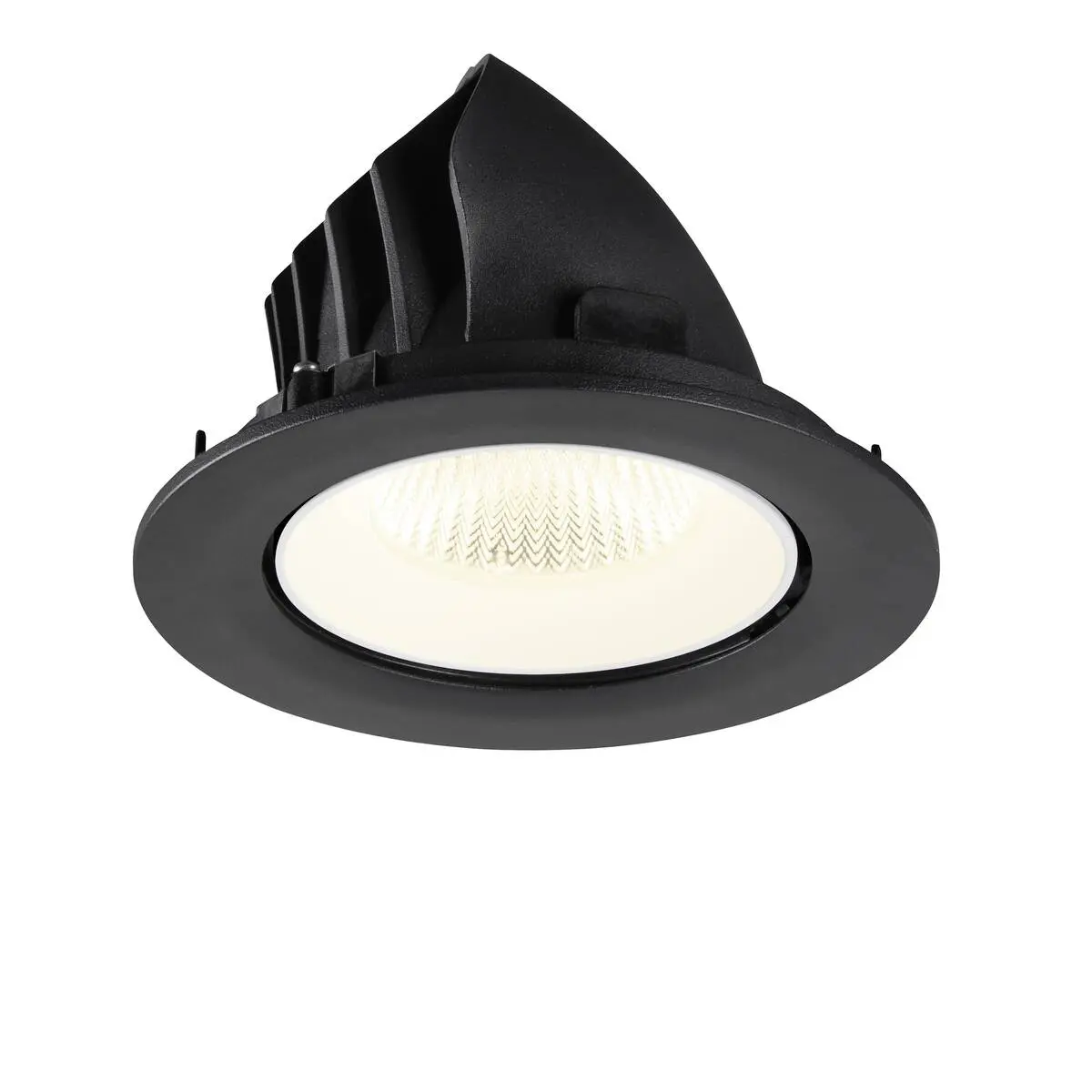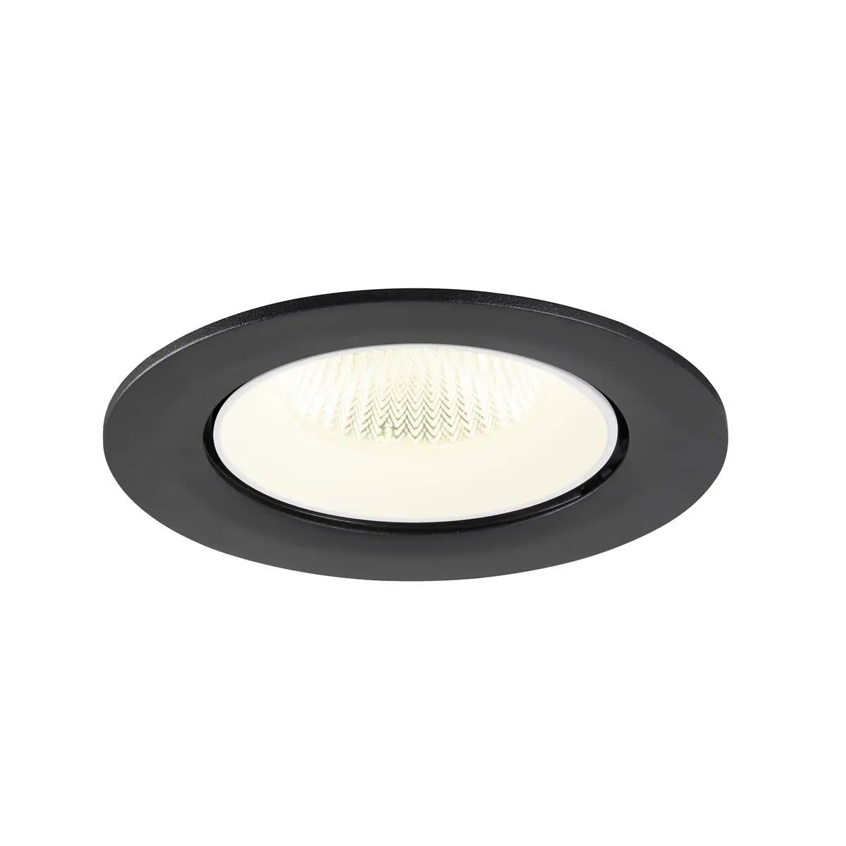 SLV Numinos Gimble L LED-Einbauleuchte 1009743 verleiht gelungenen Raumkonzepten mit schwarzem Gehäuse und Kontrast weiß abgesetztem Reflektor klare Statements und lässt sich für eine flexible Ausleuchtung bis zu 60° schwenken und um 355° drehen. Ausgerüstet mit CRI 90 sorgt sie für eine natürlich brillante Farbwiedergabe und setzt den Innenraum so stilvoll in Szene. Die SLV Numinos Gimble L LED-Einbauleuchte leistet 17 Watt, bei einem Lichtstrom von 2700 Lumen, mit einer neutralweißen Farbtemperatur in 4000 Kelvin und einem Abstrahlwinkel in 40° und erzielt so effiziente 158 Lumen pro Watt. Ihre Qualität ist mit langlebigen 50.000 Stunden in L90B10 hoch, die der Hersteller zudem mit 5 Jahren Garantie absichert. Unsere SLV Numinos Gimble L LED-Einbauleuchte besitzt ein Leuchtengehäuse aus hochwertigem Aluminium und misst einen Durchmesser von 16cm, einen Einbaudurchmesser mit 14.5cm sowie eine Einbautiefe in 11.5cm. Als Zubehör stehen ihr LED-Treiber in On/Off, dimmbar und DALI zur Verfügung - ebenso Diffusoren für verschiedene Lichtauslässe und Reflektoren für einen trendigen Look.