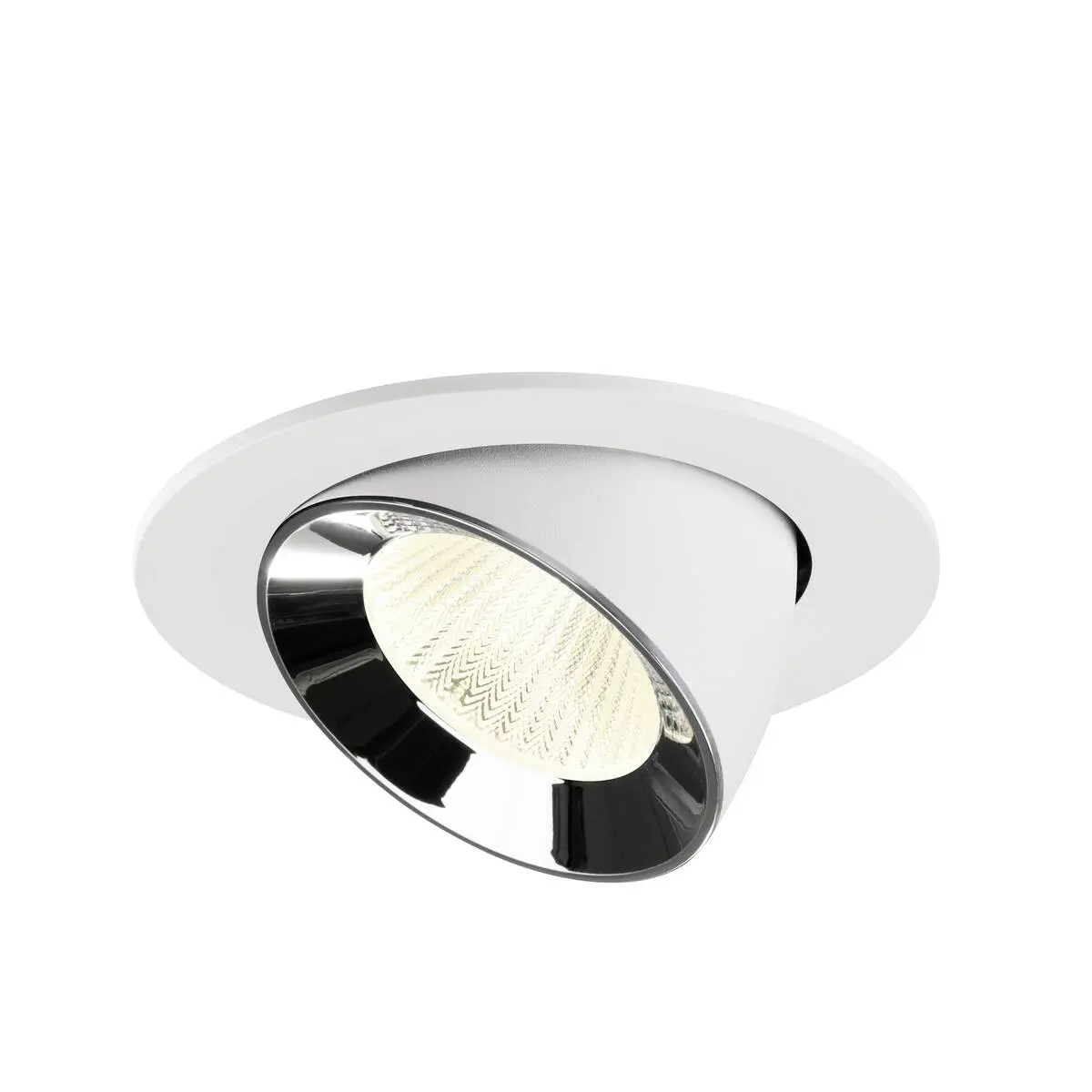 SLV Numinos Gimble L LED-Einbauleuchte 1009753 verleiht gelungenen Projekten mit weißem Gehäuse und Kontrast chromfarbenem Reflektor hochwertige Statements und lässt sich als Highlight bis zu 60° schwenken und um 355° drehen. Ausgerüstet mit CRI 90 sorgt sie für eine natürlich brillante Farbwiedergabe und setzt das Interieur stilvoll in Szene. Die SLV Numinos Gimble L LED-Einbauleuchte leistet 17 Watt, bei einem Lichtstrom von 2700 Lumen, mit einer neutralweißen Farbtemperatur in 4000 Kelvin und einem Abstrahlwinkel in 40° und erzielt so effiziente 158 Lumen pro Watt. Mit einer hohen Qualität von 50.000 Stunden in L90B10, gewährt der Hersteller zudem 5 Jahre Garantie. Unsere SLV Numinos Gimble L LED-Einbauleuchte besitzt ein Leuchtengehäuse aus hochwertigem Aluminium und misst einen Durchmesser von 16cm, einen Einbaudurchmesser mit 14.5cm sowie eine Einbautiefe in 11.5cm. Als Zubehör stehen LED-Treiber in On/Off, dimmbar und DALI zur Verfügung - ebenso Diffusoren für verschiedene Lichtauslässe und Reflektoren für einen trendigen Look.