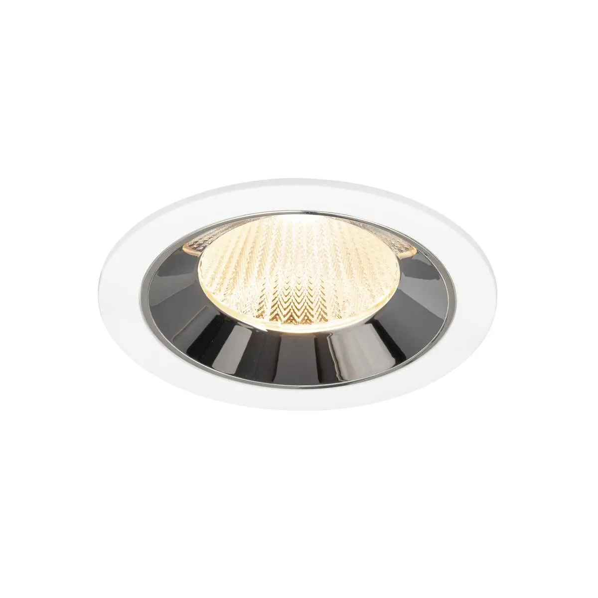 SLV Numinos L LED-Einbauspot 1009770 kommt mit einem runden, modernen Design zum Einsatz und sticht in seiner sauberen Verarbeitung hervor, wobei er mit weißem Lampengehäuse und Kontrast chromfarbenem Reflektor Highlights in jedem Raum schafft. Ausgerüstet mit CRI 90 sorgt er für eine natürlich brillante Farbwiedergabe, wodurch er das Interieur stilvoll in Szene setzt. Der SLV Numinos L LED-Einbauspot leistet 17 Watt, bei einem Lichtstrom von 2400 Lumen, mit einer gemütlich warmweißen Farbtemperatur in 2700 Kelvin und einem Abstrahlwinkel in 40° und erzielt so effiziente 141 Lumen pro Watt. Seine Qualität ist mit langlebigen 50.000 Stunden in L90B10 hoch, die der Hersteller mit 5 Jahren Garantie zusätzlich absichert. Unser SLV Numinos L LED-Einbauspot besitzt ein Lampengehäuse aus hochwertigem Aluminium und misst einen Durchmesser von 13cm, einen Einbaudurchmesser mit 12cm sowie eine Einbautiefe in 8.5cm. Als Zubehör stehen ihm LED-Treiber in On/Off, dimmbar und DALI zur Auswahl - ebenso Diffusoren für kreative Lichtauslässe und Reflektoren für einen trendigen Look.