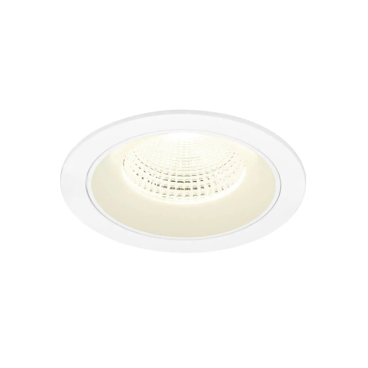 SLV Numinos L LED-Einbauspot 1009808 überzeugt mit einem runden, sauber verarbeiteten Design und setzt mit rückversetzer Lichtquelle edle Statements in gelungenen Projekten. Ausgerüstet mit CRI 90 sorgt er für eine natürlich brillante Farbwiedergabe und hebt das Interieur stilvoll in Szene. Der SLV Numinos L LED-Einbauspot leistet 17 Watt, bei einem Lichtstrom von 2700 Lumen, mit einer neutralweißen Farbtemperatur in 4000 Kelvin und einem Abstrahlwinkel in 55° und erzielt so effiziente 158 Lumen pro Watt. Mit einer hohen Qualität von langlebigen 50.000 Stunden in L90B10, gewährt der Hersteller zudem 5 Jahre Garantie. Unser SLV Numinos L LED-Einbauspot besitzt ein weißes Lampengehäuse aus hochwertigem Aluminium und misst einen Durchmesser von 13cm, einen Einbaudurchmesser mit 12cm sowie eine Einbautiefe in 8.5cm. Als Zubehör werden LED-Treiber in On/Off, dimmbar und DALI angeboten - ebenso Diffusoren für kreative Lichtauslässe und Reflektoren für einen trendigen Look.