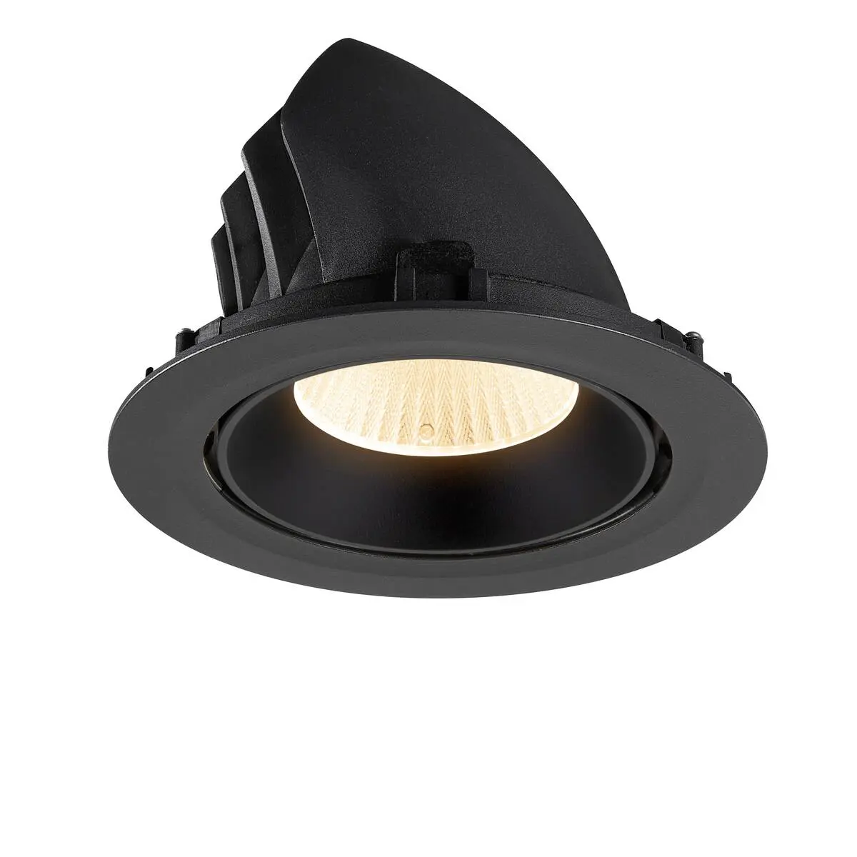 SLV Numinos Gimble XL LED-Einbauleuchte 1009867 verleiht gelungenen Raumkonzepten mit Lichtqualität den richtigen Glanz und ist als Highlight bis zu 60° schwenkbar und um 355° drehbar, was sie zu einer flexiblen Beleuchtungslösung macht. Ausgerüstet mit CRI 90 sorgt sie für eine natürlich brillante Farbwiedergabe und setzt den Innenraum so stilvoll in Szene, wobei sie mit UGR19 zudem nahezu blendfrei scheint. Die SLV Numinos Gimble XL LED-Einbauleuchte leistet 24 Watt, bei einem Lichtstrom von 3500 Lumen, mit einer gemütlich warmweißen Farbtemperatur in 2700 Kelvin und einem Abstrahlwinkel in 40° und erzielt so effiziente 145 Lumen pro Watt. Mit einer hohen Qualität von 50.000 Stunden in L90B10, gewährt der Hersteller zudem 5 Jahre Garantie. Unsere SLV Numinos Gimble XL LED-Einbauleuchte verfügt über ein Leuchtengehäuse aus hochwertigem Aluminium und misst einen Durchmesser von 19cm, einen Einbaudurchmesser mit 17.5cm sowie eine Einbautiefe in 13.5cm. Als Zubehör stehen ihr LED-Treiber in On/Off, dimmbar und DALI zur Verfügung - ebenso Diffusoren für verschiedene Lichtauslässe und Reflektoren für einen trendigen Look.