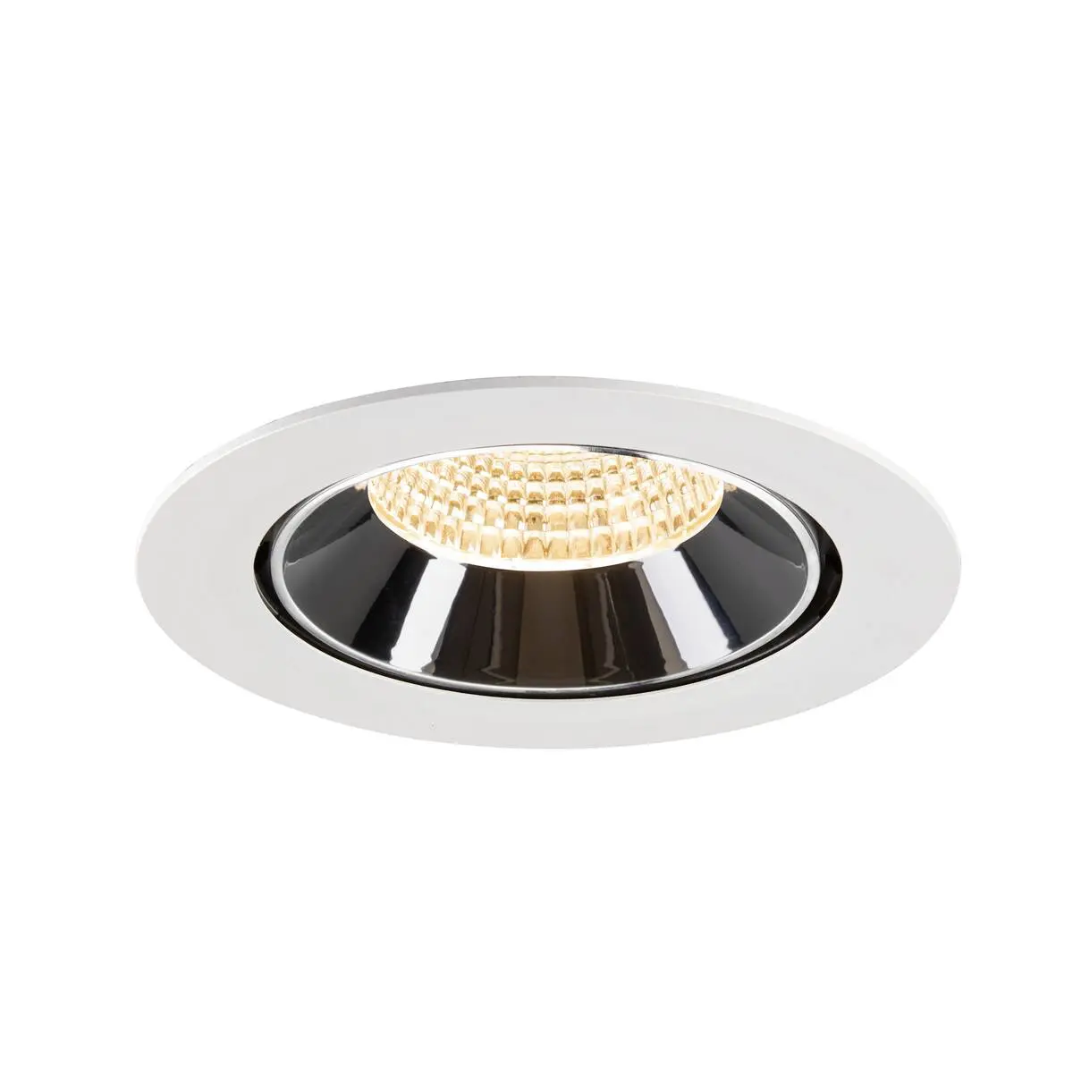 SLV Numinos Gimble XL LED-Einbauleuchte 1009881 überzeugt mit einem weißen Gehäuse und Kontrast chromfarbenem Reflektor und lässt sich für eine flexible Ausleuchtung bis zu 60° schwenken und um 355° drehen. Ausgerüstet mit CRI 90 sorgt sie für eine natürlich brillante Farbwiedergabe und setzt den Innenraum stilvoll in Szene. Die SLV Numinos Gimble XL LED-Einbauleuchte leistet 24 Watt, bei einem Lichtstrom von 3500 Lumen, mit einer gemütlich warmweißen Farbtemperatur in 2700 Kelvin und einem Abstrahlwinkel in 55° und erzielt so effiziente 145 Lumen pro Watt. Mit einer hohen Qualität von 50.000 Stunden in L90B10, gewährt der Hersteller zudem 5 Jahre Garantie. Unsere SLV Numinos Gimble XL LED-Einbauleuchte besitzt ein Leuchtengehäuse aus hochwertigem Aluminium und misst einen Durchmesser von 19cm, einen Einbaudurchmesser mit 17.5cm sowie eine Einbautiefe in 13.5cm. Als Zubehör stehen ihr LED-Treiber in On/Off, dimmbar und DALI zur Verfügung - ebenso Diffusoren für verschiedene Lichtauslässe und Reflektoren für einen trendigen Look.