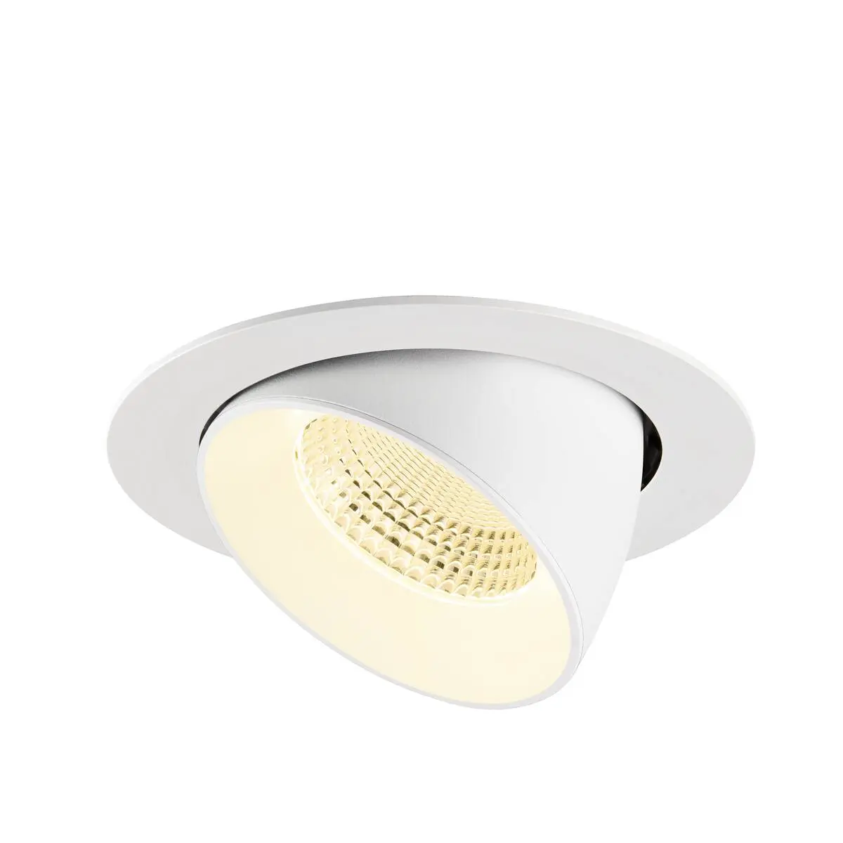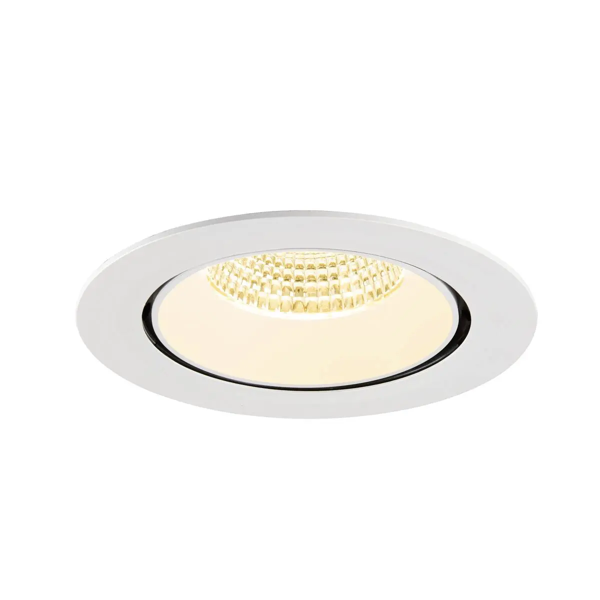 SLV Numinos Gimble XL LED-Einbauleuchte 1009898 verleiht gelungenen Raumkonzepten mit Lichtqualität den nötigen Glanz und lässt sich als Highlight bis zu 60° schwenken und um 355° drehen, was sie zu einer flexiblen Beleuchtungslösung macht. Ausgerüstet mit CRI 90 sorgt sie für eine natürlich brillante Farbwiedergabe und setzt das Interieur bestmöglich in Szene. Die SLV Numinos Gimble XL LED-Einbauleuchte leistet 24 Watt, bei einem Lichtstrom von 3600 Lumen, mit einer warmweißen Farbtemperatur in 3000 Kelvin und einem Abstrahlwinkel in 55° und erzielt so effiziente 150 Lumen pro Watt. Mit einer hohen Qualität von 50.000 Stunden in L90B10, gewährt der Hersteller zudem 5 Jahre Garantie. Unsere SLV Numinos Gimble XL LED-Einbauleuchte besitzt ein weißes Lampengehäuse aus hochwertigem Aluminium und misst einen Durchmesser von 19cm, einen Einbaudurchmesser mit 17.5cm sowie eine Einbautiefe in 13.5cm. Als Zubehör stehen ihr LED-Treiber in On/Off, dimmbar und DALI zur Verfügung - ebenso Diffusoren für verschiedene Lichtauslässe und Reflektoren für einen trendigen Look.