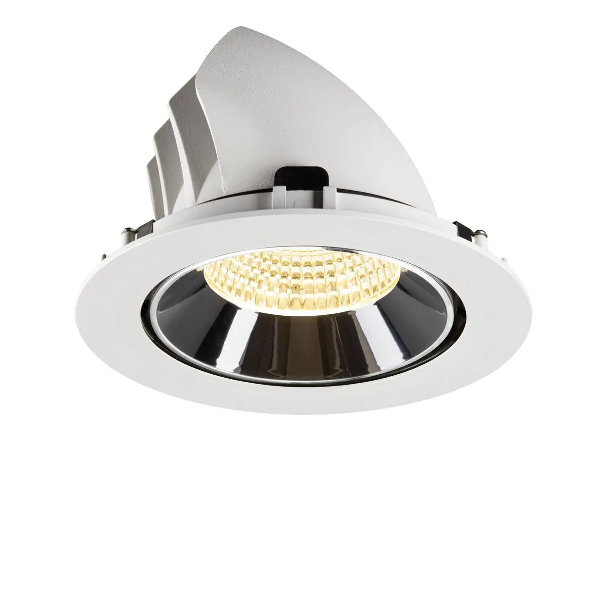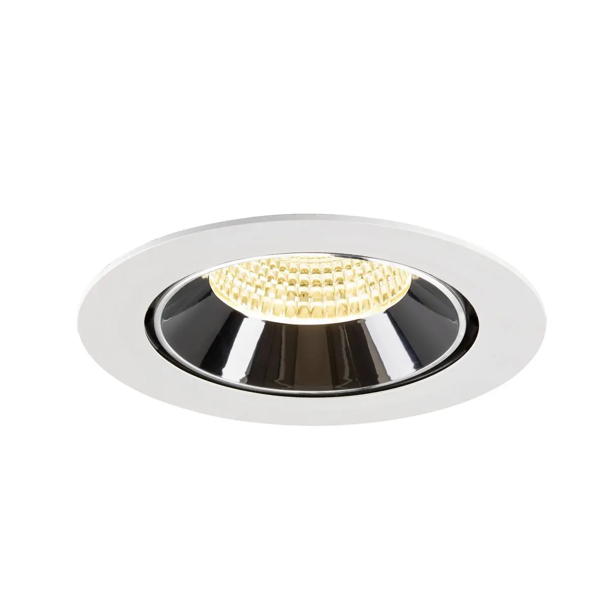 SLV Numinos Gimble XL LED-Einbauleuchte 1009899 verleiht gelungenen Raumkonzepten mit weißem Gehäuse und Kontrast chromfarbenem Reflektor moderne Statements und lässt sich für eine flexible Ausleuchtung um 60° schwenken und um 355°drehen. Ausgerüstet mit CRI 90 sorgt sie für eine natürlich brillante Farbwiedergabe und setzt den Innenraum stilvoll in Szene. Die SLV Numinos Gimble XL LED-Einbauleuchte leistet 24 Watt, bei einem Lichtstrom von 3600 Lumen, mit einer warmweißen Farbtemperatur in 3000 Kelvin und einem Abstrahlwinkel in 55° und erzielt 150 Lumen pro Watt. Mit einer hohen Qualität von 50.000 Stunden in L90B10, gewährt der Hersteller zudem 5 Jahre Garantie. Unsere SLV Numinos Gimble XL LED-Einbauleuchte besitzt ein Leuchtengehäuse aus hochwertigem Aluminium und misst einen Durchmesser von 19cm, einen Einbaudurchmesser mit 17.5cm sowie eine Einbautiefe in 13.5cm. Als Zubehör stehen ihr LED-Treiber in On/Off, dimmbar und DALI zur Verfügung - ebenso Diffusoren für verschiedene Lichtauslässe und Reflektoren für einen trendigen Look.