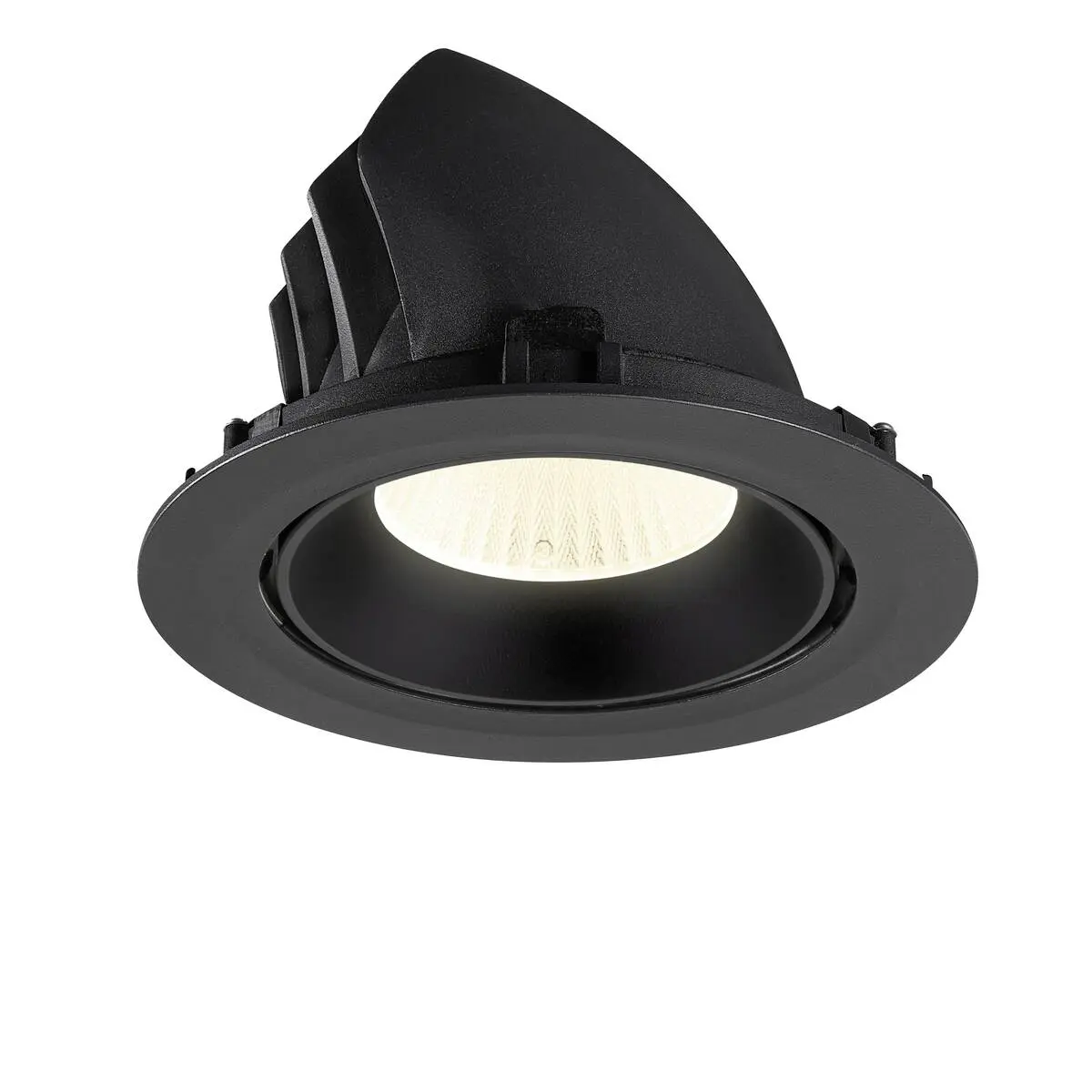 SLV Numinos Gimble XL LED-Einbauleuchte 1009903 verleiht gelungenen Projekten mit Lichtqualität den nötigen Glanz und ist als Highlight bis zu 60° schwenkbar und um 355° drehbar, was sie zu einer flexiblen Beleuchtungslösung macht. Ausgerüstet mit CRI 90 sorgt sie für eine natürlich brillante Farbwiedergabe und stellt das Interieur bestmöglich in den Vordergrund, wobei sie dieses mit UGR19 zudem nahezu blendfrei macht. Die SLV Numinos Gimble XL LED-Einbauleuchte leistet 24 Watt, bei einem Lichtstrom von 3800 Lumen, mit einer neutralweißen Farbtemperatur in 4000 Kelvin und einem Abstrahlwinkel in 40° und erzielt so effiziente 158 Lumen pro Watt. Ihre Qualität ist mit langlebigen 50.000 Stunden in L90B10 hoch, die der Hersteller zudem mit 5 Jahren Garantie absichert. Unsere SLV Numinos Gimble XL LED-Einbauleuchte verfügt über ein schwarzes Gehäuse aus hochwertigem Aluminium und misst einen Durchmesser von 19cm, einen Einbaudurchmesser mit 17.5cm sowie eine Einbautiefe in 13.5cm. Als Zubehör stehen ihr LED-Treiber in On/Off, dimmbar und DALI zur Verfügung - ebenso Diffusoren für diverse Lichtauslässe und Reflektoren für einen trendigen Look.