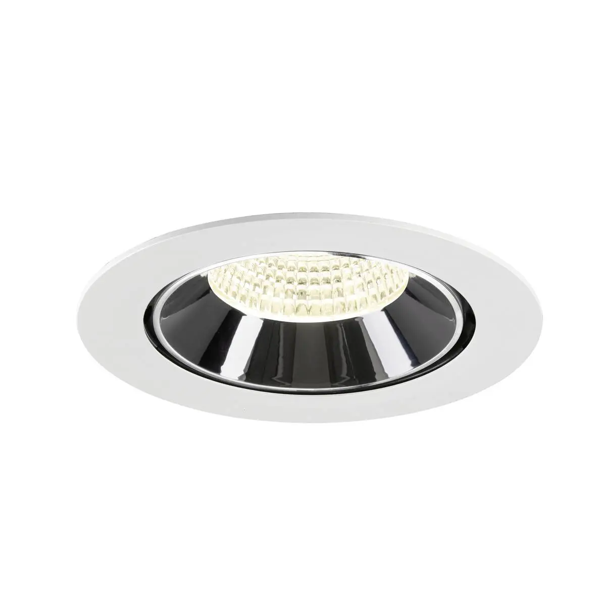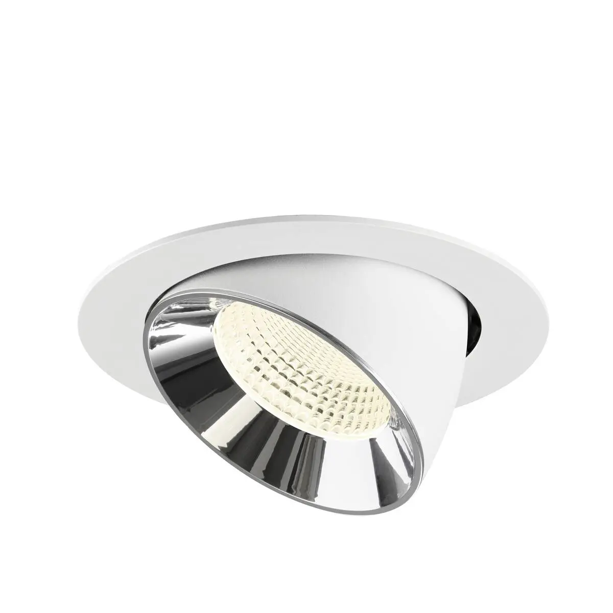 SLV Numinos Gimble XL LED-Einbauleuchte 1009917 verleiht gelungenen Projekten mit weißem Gehäuse und Kontrast chromfarbig abgesetztem Reflektor hochwertige Statements und lässt sich für eine flexible Ausleuchtung bis zu 60° schwenken und um 355° drehen. Ausgerüstet mit CRI 90 sorgt sie für eine natürlich brillante Farbwiedergabe und hebt den Innenraum stilvoll ins richtige Ambiente. Die SLV Numinos Gimble XL LED-Einbauleuchte leistet 24 Watt, bei einem Lichtstrom von 3800 Lumen, mit einer neutralweißen Farbtemperatur in 4000 Kelvin und einem Abstrahlwinkel in 55° und erzielt so effiziente 158 Lumen pro Watt. Mit einer hohen Qualität von 50.000 Stunden in L90B10, gewährt der Hersteller zudem 5 Jahre Garantie. Unsere SLV Numinos Gimble XL LED-Einbauleuchte besitzt ein Leuchtengehäuse aus hochwertigem Aluminium und misst einen Durchmesser von 19cm, einen Einbaudurchmesser mit 17.5cm sowie eine Einbautiefe in 13.5cm. Als Zubehör stehen ihr LED-Treiber in On/Off, dimmbar und DALI zur Verfügung - ebenso Diffusoren für verschiedene Lichtauslässe und Reflektoren für einen trendigen Look.