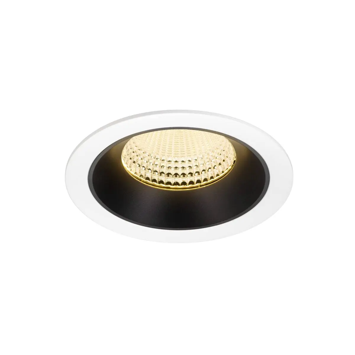 SLV Numinos XL LED-Einbauspot 1009951 kommt mit einem sauber verarbeiteten, modernen Design zum Einsatz, wobei das weiße Gehäuse mit einem Kontrast schwarzen Reflektor versehen ist und in gelungenen Projekten hochwertige Statements setzt. Ausgerüstet mit CRI 90 sorgt er für eine natürlich brillante Farbwiedergabe, wodurch er das Interieur stilvoll in Szene setzt. Der SLV Numinos XL LED-Einbauspot leistet 24 Watt, bei einem Lichtstrom von 3600 Lumen, mit einer warmweißen Farbtemperatur in 3000 Kelvin und einem Abstrahlwinkel in 55° und erzielt so effiziente 150 Lumen pro Watt. Mit einer hohen Qualität von 50.000 Stunden in L90B10, gewährt der Hersteller zudem 5 Jahre Garantie. Unser SLV Numinos XL LED-Einbauspot besitzt ein Lampengehäuse aus hochwertigem Aluminium und misst einen Durchmesser von 16cm, einen Einbaudurchmesser mit 14.5cm sowie eine Einbautiefe in 10.5cm. Als Zubehör werden LED-Treiber in On/Off, dimmbar und DALI angeboten - ebenso Diffusoren für kreative Lichtauslässe und Reflektoren für einen trendigen Look.