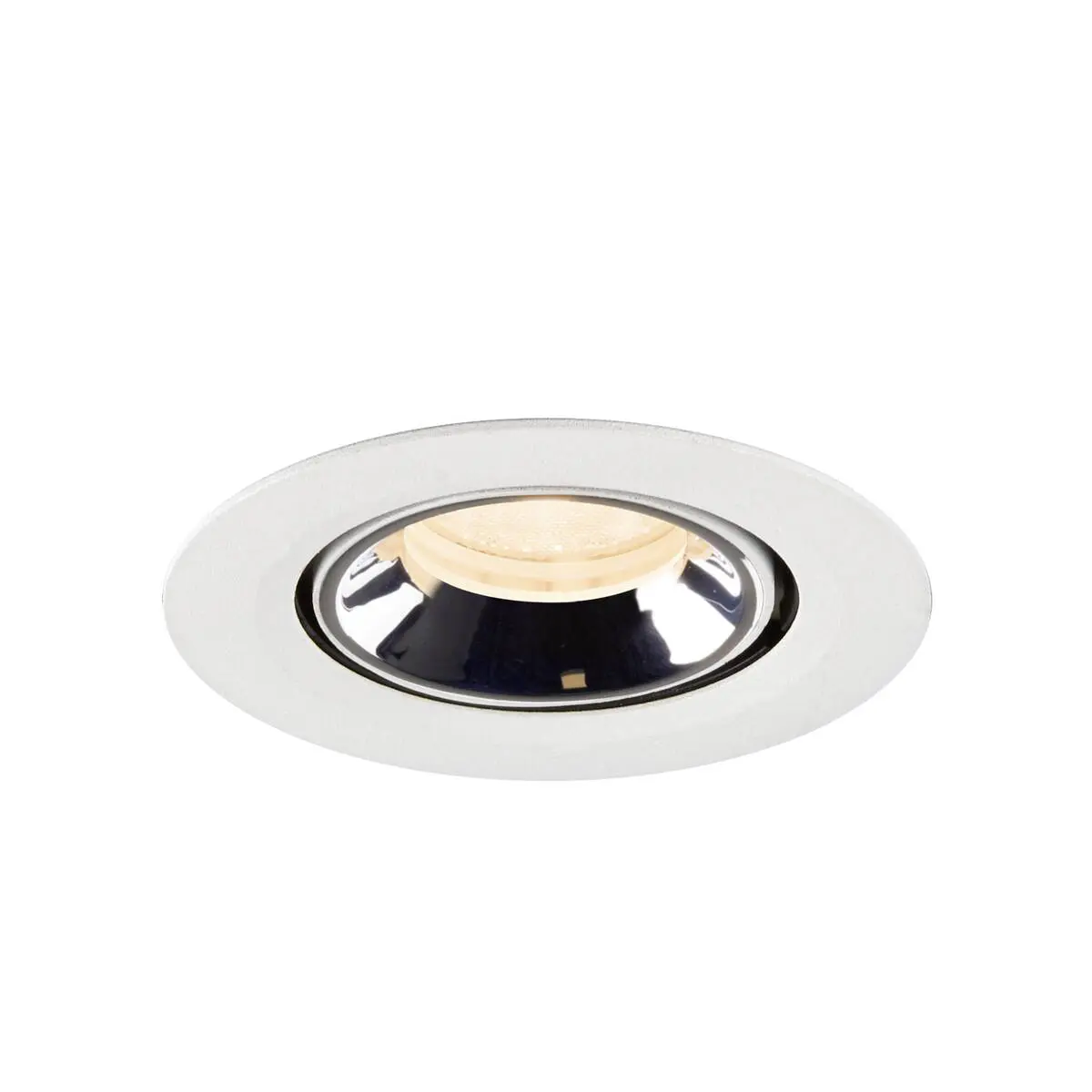 SLV Numinos Gimble XS LED-Einbauleuchte 1010040 verleiht gelungenen Raumkonzepten mit weißem Gehäuse und chromfarbenem Reflektor hochwertige Statements und lässt sich als Highlight bis zu 60° schwenken und um 355° drehen, was sie zu einer flexiblen Beleuchtungslösung macht. Ausgerüstet mit CRI 90 sorgt sie für eine natürlich brillante Farbwiedergabe und hebt den Innenraum so stilvoll in Szene. Die SLV Numinos Gimble XS LED-Einbauleuchte leistet 6.9 Watt, bei einem Lichtstrom von 900 Lumen, mit einer gemütlich warmweißen Farbtemperatur in 2700 Kelvin und einem Abstrahlwinkel in 40° und erzielt so effiziente 130 Lumen pro Watt. Mit einer hohen Qualität von 50.000 Lebensstunden in L90B10, gewährt der Hersteller zudem 5 Jahre Garantie. Unsere SLV Numinos Gimble XS LED-Einbauleuchte besitzt ein Leuchtengehäuse aus hochwertigem Aluminium und misst einen Durchmesser von 8cm, einen Einbaudurchmesser mit 6.8cm sowie eine Einbautiefe in 8cm. Als Zubehör stehen ihr LED-Treiber in On/Off, dimmbar und DALI zur Verfügung - ebenso Diffusoren für verschiedene Lichtauslässe und Reflektoren für einen trendigen Look.