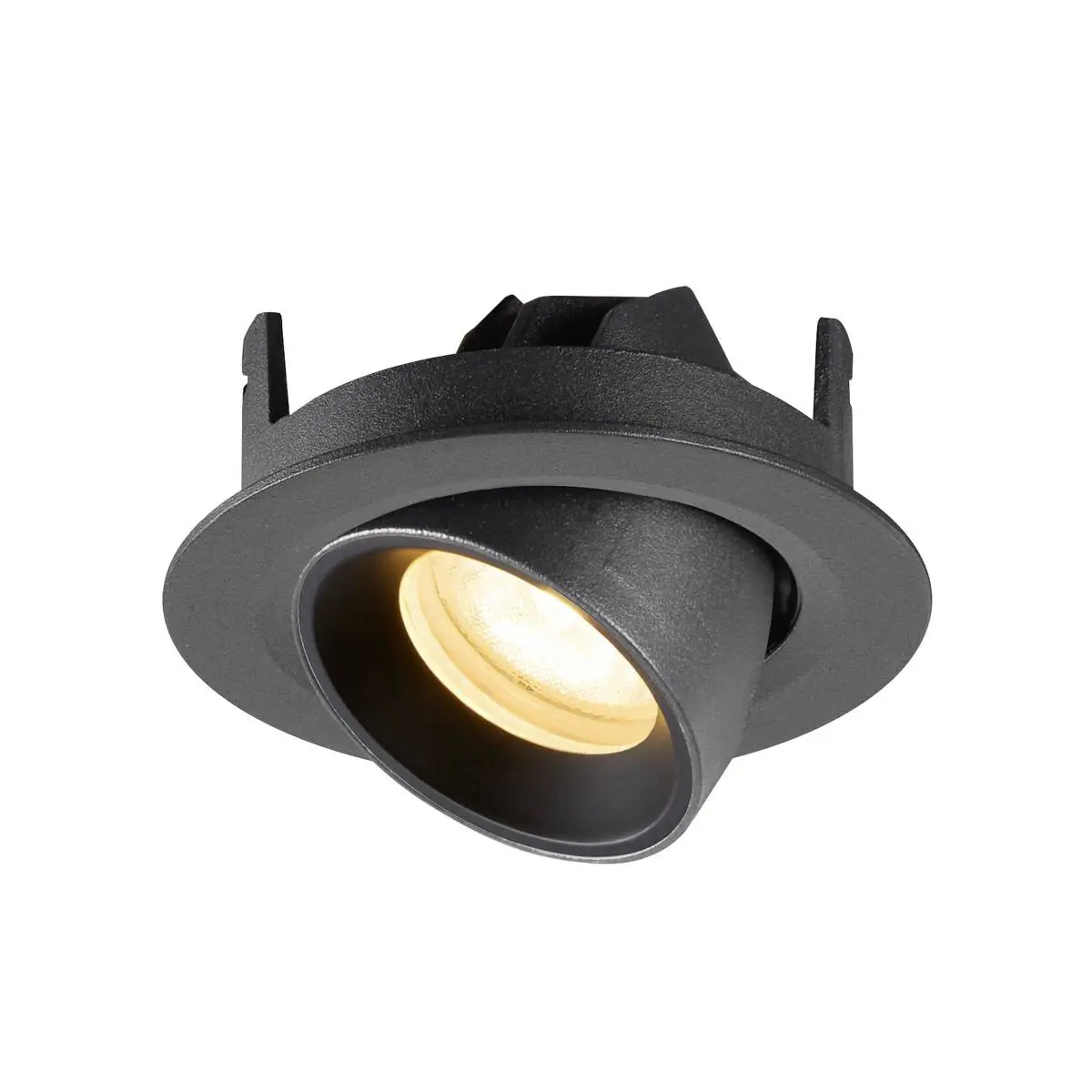 SLV Numinos Gimble XS LED-Einbauleuchte 1010050 verfügt als Highlight über ein Gelenk, wodurch sie bis zu 60° schwenkbar und um 355° drehbar ist, womit sie sich ideal für kreative Lichtprojekte eignet um schwer erreichbare Bereiche optimal mit Licht zu versorgen. Sie verfügt mit CRI 90 über eine natürlich brillante Farbwiedergabe und setzt den Innenraum so stilvoll in Szene. Die SLV Numinos Gimble XS LED-Einbauleuchte leistet 6.9 Watt, bei einem Lichtstrom von 950 Lumen, mit einer warmweißen Farbtemperatur in 3000 Kelvin und einem Abstrahlwinkel in 55° und erzielt so effiziente 137 Lumen pro Watt. Ihre Qualität ist mit langlebigen 50.000 Stunden in L90B10 hoch, die der Hersteller zudem mit 5 Jahren Garantie absichert. Unsere SLV Numinos Gimble XS LED-Einbauleuchte besitzt ein schwarzes Leuchtengehäuse aus hochwertigem Aluminium und misst einen Durchmesser von 8cm, einen Einbaudurchmesser mit 6.8cm sowie eine Einbautiefe in 8cm. Als Zubehör stehen ihr LED-Treiber in On/Off, dimmbar und DALI zur Verfügung - ebenso Diffusoren für verschiedene Lichtauslässe und Reflektoren für einen trendigen Look.