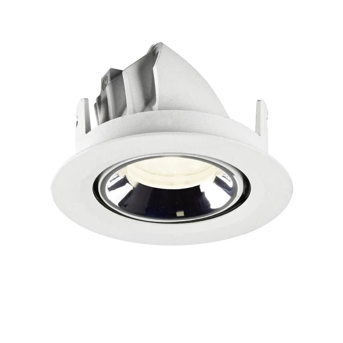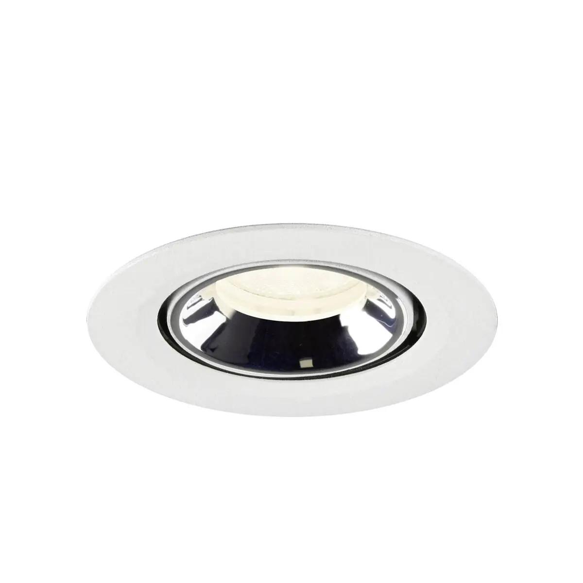 SLV Numinos Gimble XS LED-Einbauleuchte 1010076 sticht mit einem weißen Gehäuse und Kontrast chromfarbig abgesetztem Reflektor hochwertig in den Vordergrund und ist als Highlight bis zu 60° schwenkbar und um 355° drehbar, was sie zu einer flexiblen Beleuchtungslösung macht. Ausgerüstet mit CRI 90 sorgt sie für eine natürlich brillante Farbwiedergabe und setzt das Interieur so stilvoll in Szene. Die SLV Numinos Gimble XS LED-Einbauleuchte leistet 6.9 Watt, bei einem Lichtstrom von 1000 Lumen, mit einer neutralweißen Farbtemperatur in 4000 Kelvin und einem Abstrahlwinkel in 40° und erzielt so effiziente 144 Lumen pro Watt. Mit eine hohen Qualität von 50.000 Lebensstunden in L90B10, gewährt der Hersteller zudem 5 Jahre Garantie. Unsere SLV Numinos Gimble XS LED-Einbauleuchte besitzt ein Lampengehäuse aus hochwertigem Aluminium und misst einen Durchmesser von 8cm, einen Einbaudurchmesser mit 6.8cm sowie eine Einbautiefe in 8cm. Als Zubehör stehen ihr LED-Treiber in On/Off, dimmbar und DALI zur Verfügung - ebenso Diffusoren für verschiedene Lichtauslässe und Reflektoren für einen trendigen Look.