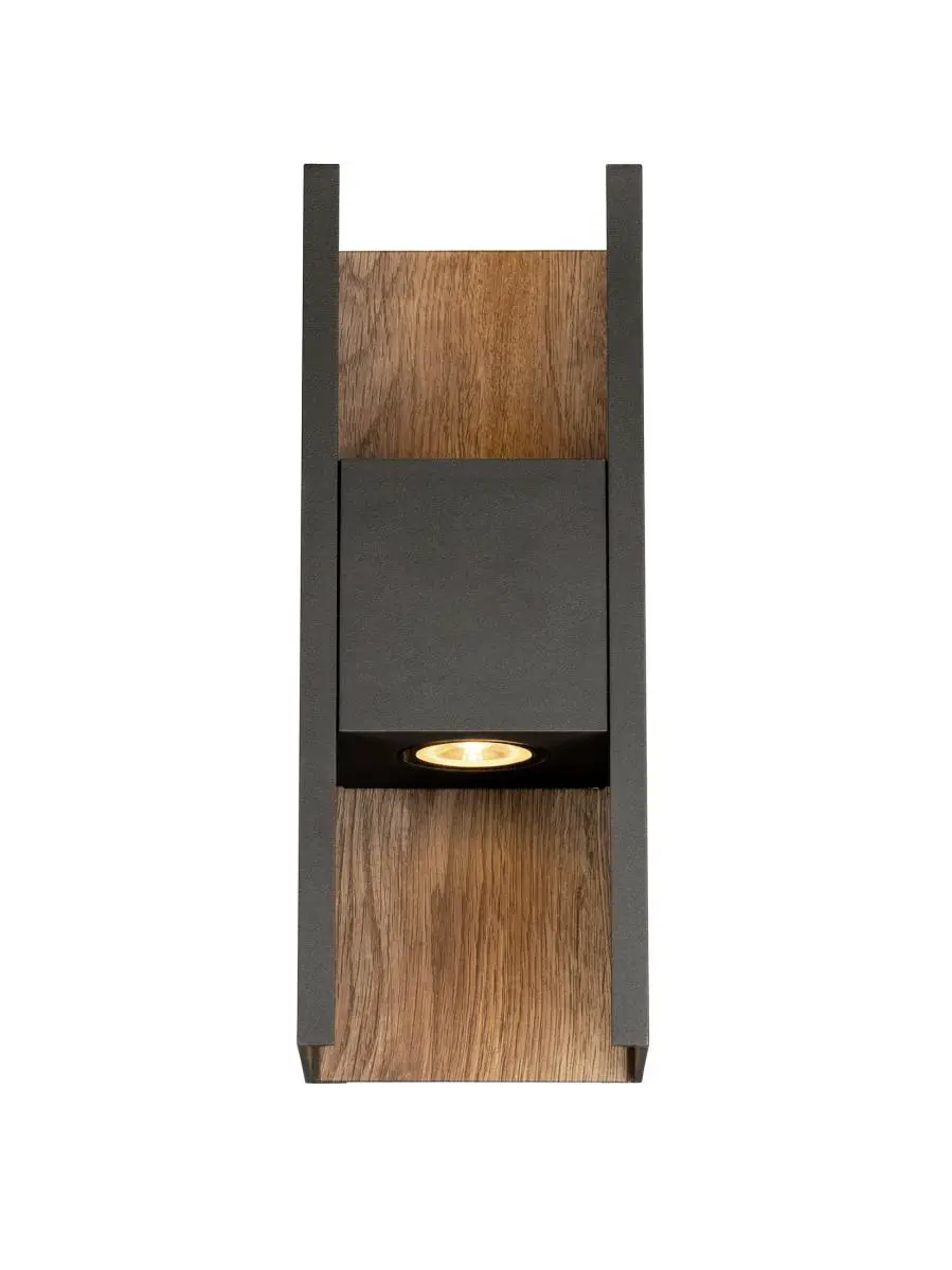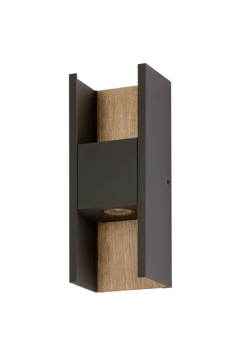 SLV Flatt II LED-Außenwandlampe 1010101 trägt ein quadratisches Design, wobei der hintere innere Teil mit einer Holz-Optik versehen ist, die von den beiden nach oben und unten scheinenden Lichtquellen stilvoll in Szene gesetzt wird, womit sie einen modernen, natürlichen Trend versprüht. Sie erfüllt alle Anforderungen an Naturschutz zur Vermeidung von Lichtverschmutzung und ist dimmbar mit einem Phasen-Dimmer. Die SLV Flatt II LED-Außenwandlampe leistet 9.5 Watt, bei einem Lichtstrom von 640 Lumen und einer gemütlich warmweißen Farbtemperatur in 2700 Kelvin. Ihre Qualität ist mit langlebigen 50.000 Stunden in L80B20 hoch, welche der Hersteller mit 5 Jahren Garantie absichert. Ausgerüstet mit IP65 ist sie bestens vor Schmutz und Strahlwasser geschützt und mit ihrer speziellen Oberflächenbeschichtung sogar seeluftbeständig. Unsere SLV Flatt II LED-Außenwandlampe besitzt ein anthrazit, holzfarbenes Gehäuse aus hochwertigem Aluminium und misst eine Höhe von 26cm, eine Breite mit 9.9cm sowie eine Tiefe in 8.6cm.