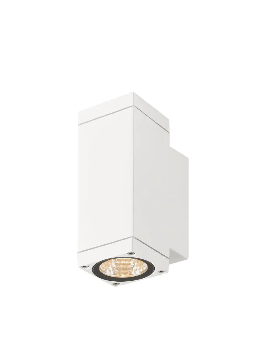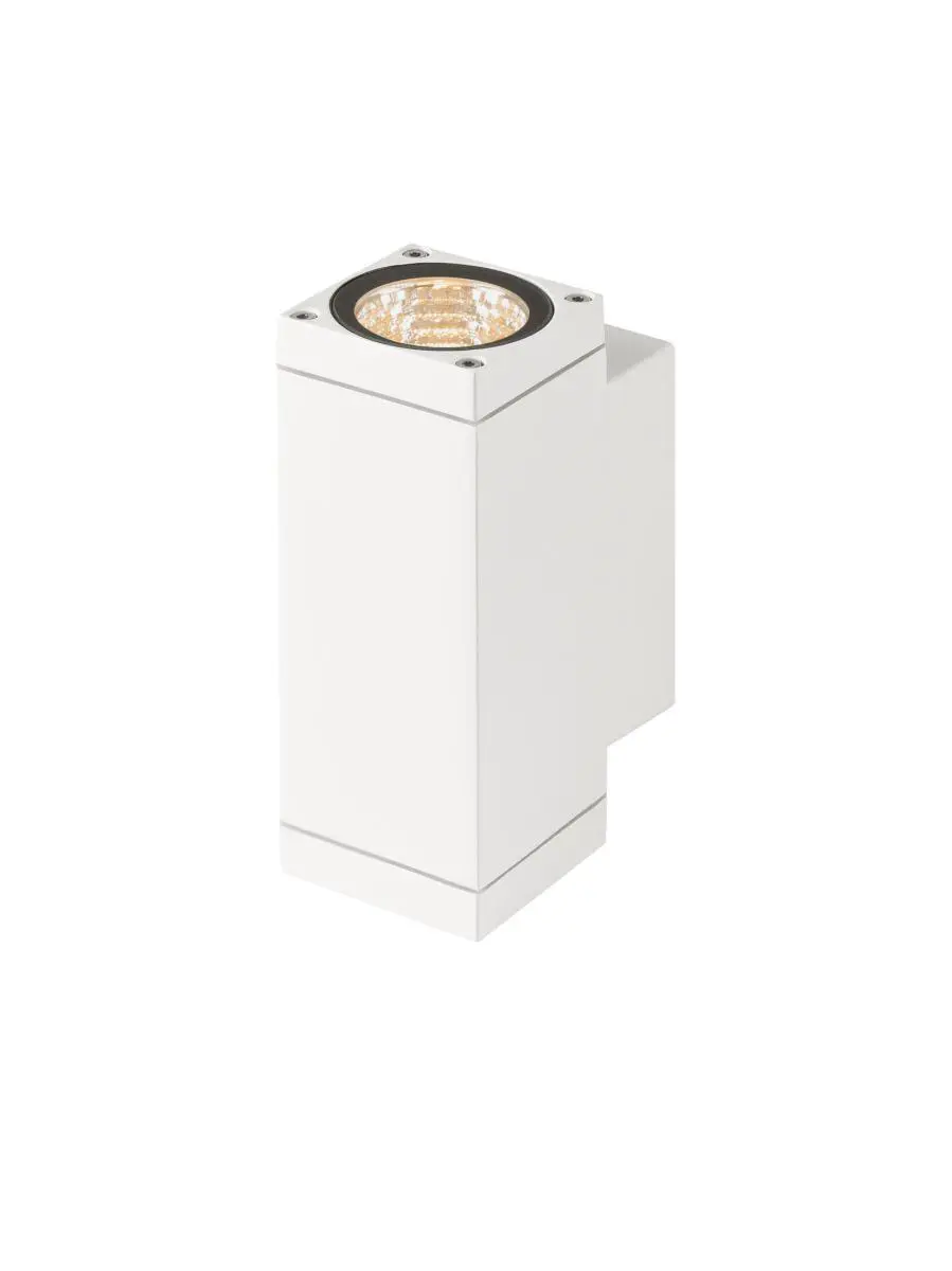 SLV Theo Pro S LED-Außenwandlampe 1010180 besitzt ein rechteckiges Design und setzt Fassaden stilvoll in Szene, wobei er seinen Lichtschein nach oben und unten wirft und für klare Statements sorgt. Sie ist DALI dimmbar und mit IP65 bestens vor Schmutz und Strahlwasser geschützt, wobei ihre spezielle Oberflächenbeschichtung sie sogar seeluftbeständig macht. Sie wird für eine kreative Lichtverteilung mit einem Wechselreflektor in 10° geliefert - ebenso mit einer Folie für eine asymmetrische Lichtverteilung. Sie leistet 6 Watt, bei einem Lichtstrom von 2x 300lm und einer gemütlich warmweißen Farbtemperatur in 2700 Kelvin. Ihre Qualität ist mit 50.000 Lebensstunden in L80B10 hoch, welche der Hersteller mit 5 Jahren Garantie absichert. Unsere SLV Theo Pro S LED-Außenwandlampe besitzt ein weißen Gehäuse aus hochwertigem Aluminium und misst eine Höhe in 17.5cm, eine Breite mit 6.5cm sowie eine Tiefe in 10cm. Für eine optimale Fassadengestaltung besitzen alle Leuchten der Serie S Up Down und Down gleiche Abmessungen.