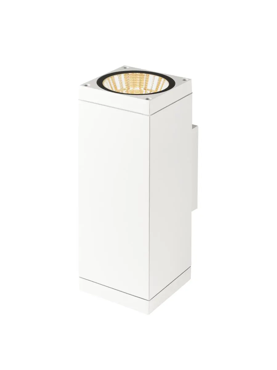 SLV Theo Pro L LED-Außenwandlampe 1010188 überzeugt mit ihrem modernen, rechteckigen Design, wobei sie einen hochwertigen Lichtschein an der Fassade entlang nach oben und nach unten abgibt und am Objekt für klare Statements sorgt. Durch eine spezielle Oberflächenbeschichtung ist sie seeluftbeständig und mit IP65 bestens vor Schmutz und Strahlwasser geschützt. Der mitgelieferte Wechselreflektor in 10° sorgt für eine kreative Lichtgestaltung - ebenso eine Folie für eine asymmetrische Lichtverteilung. Die SLV Theo Pro L LED-Außenwandlampe ist DALI dimmbar und leistet 20 Watt, bei einem Lichtstrom von 2x 1200 Lumen und einer gemütlich warmweißen Farbtemperatur in 2700 Kelvin und erzielt so effiziente 120 Lumen pro Watt. Ihre Qualität ist mit 50.000 Stunden in L80B10 hoch, die der Hersteller mit 5 Jahren Garantie absichert. Unsere SLV Theo Pro L LED-Außenwandlampe trägt ein weißes Gehäuse aus hochwertigem Aluminium und misst eine Höhe von 30.5cm, eine Breite mit 10.8cm sowie eine Tiefe in 15.5cm. Für ein einheitliches Fassadenbild sind alle Leuchten der Serie L Up Down und Down mit gleichen Abmessungen.