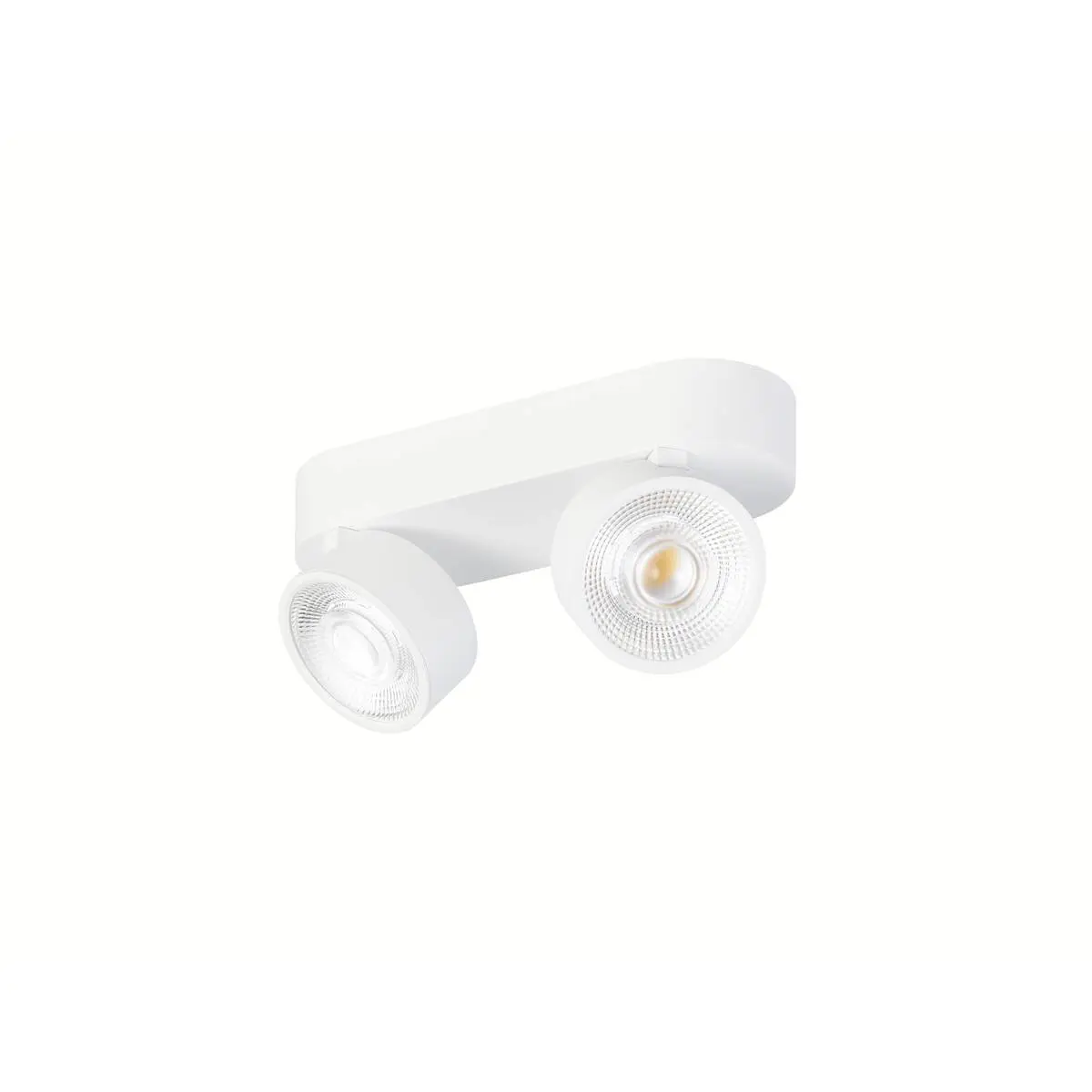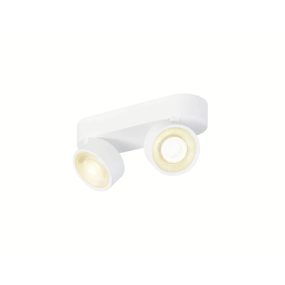 SLV Kalu 2.0 LED-Wand & Deckenspot 1010269 überzeugt in 2-flammiger Ausführung mit flachen, runden Spots, welche sich wunschorientiert um 270° drehen und um 90° schwenken lassen und ebenfalls direkt nach unten strahlen können. Ausgerüstet mit CRI 90 sorgt er für eine natürlich, brillante Farbwiedergabe und mit UGR19 tut er dies nahezu blendfrei und ist dimmbar mit einem Phasenabschnitts-Dimmer. Der SLV Kalu 2.0 LED-Wand & Deckenspot leistet 19 Watt, bei einem Lichtstrom von 2x 1400 Lumen und einer warmweißen Farbtemperatur in 3000 Kelvin und erzielt so effiziente 147 Lumen pro Watt. Seine Qualität ist mit 50.000 Stunden in L90B10 hoch, die der Hersteller zusätzlich mit 5 Jahren Garantie absichert. Unser SLV Kalu 2.0 LED-Wand & Deckenspot trägt ein weißes Leuchtengehäuse aus hochwertigem Aluminium und misst einen Sportdurchmesser von 9cm, mit einer Höhe in 9cm sowie eine Länge in 26.3cm. Als externes Zubehör stehen ihm für einen individuellen Look Dekoringe in Trendfarben zur Verfügung - ebenso Reflektoren in 15°, 24° und 60°.