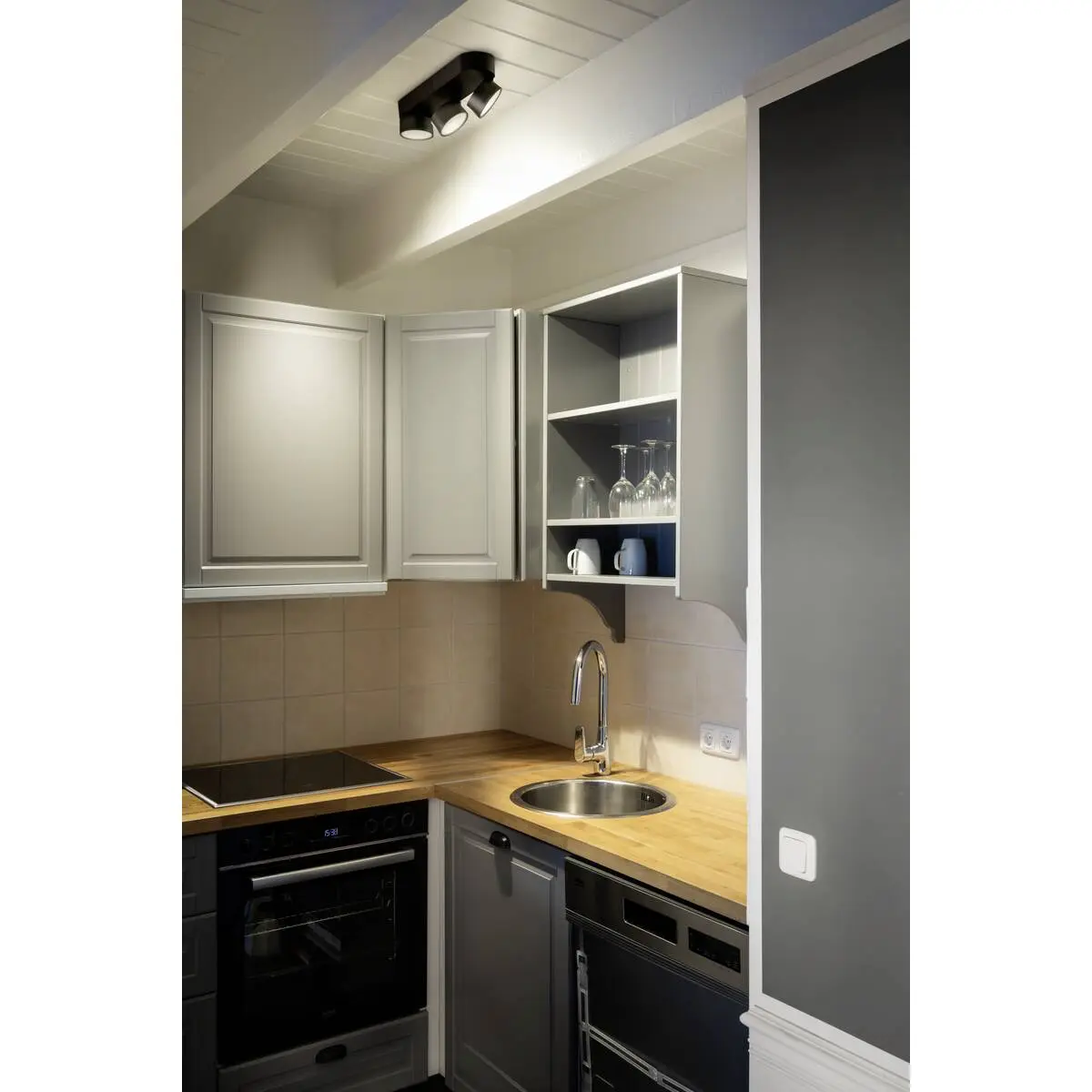 SLV Kalu 2.0 LED-Wand & Deckenspot 1010273 überzeugt in modernem Look, wobei die 3-flammigen rund - flachen Spots sich um 270° drehen und um 90° schwenken lassen und auch direkt nach unten strahlen können. Er ist dimmbar mit einem Phasenabschnitts-Dimmer und hat mit CRI 90 eine natürlich, brillante Farbwiedergabe, wobei ein UGR19 für eine nahezu blendfreie Beleuchtung sorgt. Der SLV Kalu 2.0 LED-Wand & Deckenspot leistet 28 Watt, bei einem Lichtstrom von 3x 1400 Lumen und einer warmweißen Farbtemperatur in 3000 Kelvin und erzielt so effiziente 150 Lumen pro Watt. Er trägt mit 50.000 Lebensstunden eine hohe Qualität in L90B10, worauf der Hersteller zusätzlich 5 Jahre Garantie gewährt. Unser SLV Kalu 2.0 LED-Wand & Deckenspot besitzt ein schwarzes Leuchtengehäuse aus hochwertigem Aluminium und misst einen Durchmesser von 9cm, mit einer Höhe in 9cm sowie eine Länge mit 43.3cm. Als externes Zubehör stehen ihm weitere Dekoringe in Trendfarben zur Auswahl - ebenso Wechselreflektoren in 15°, 24° und 60°.