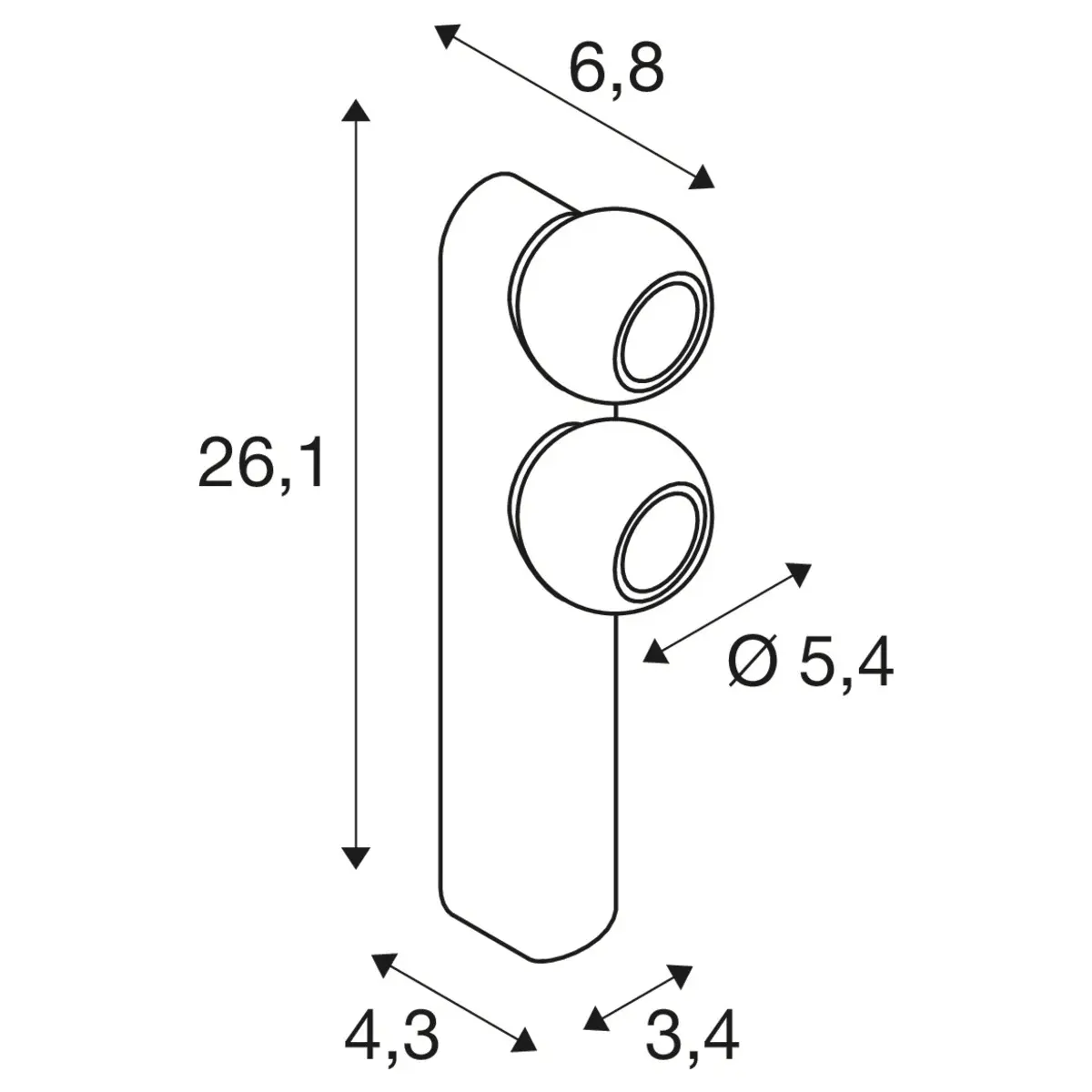 SLV Dysko LED Wand & Deckenstrahler 1010306 überzeugt mit seinen zweiflammig asymmetrisch angeordneten Kugelköpfen, die in trendfarbig gold mit facettierter Oberfläche für ein besonderen Lichtflair im Raum sorgen. Für eine wunschorientierte Ausleuchtung lassen sie sich um 360° drehen und um 90° schwenken und geben Farben mit einem CRI 90 natürlich wieder. Der SLV Dysko LED Wand & Deckenstrahler leistet 13 Watt, bei einem Lichtstrom von 1500 Lumen und einer gemütlich warmweißen Farbtemperatur in 2700 Kelvin und lässt sich mit einem Phasenabschnitts-Dimmer dimmen. Seine Qualität ist mit 50.000 Lebensstunden in L80B10 hoch, die der Hersteller mit 5 Jahren Garantie absichert. Unser SLV Dysko LED Wand & Deckenstrahler misst einen Kugeldurchmesser von 5.4cm, eine Höhe mit 26.1cm sowie eine Breite in 3.4cm.